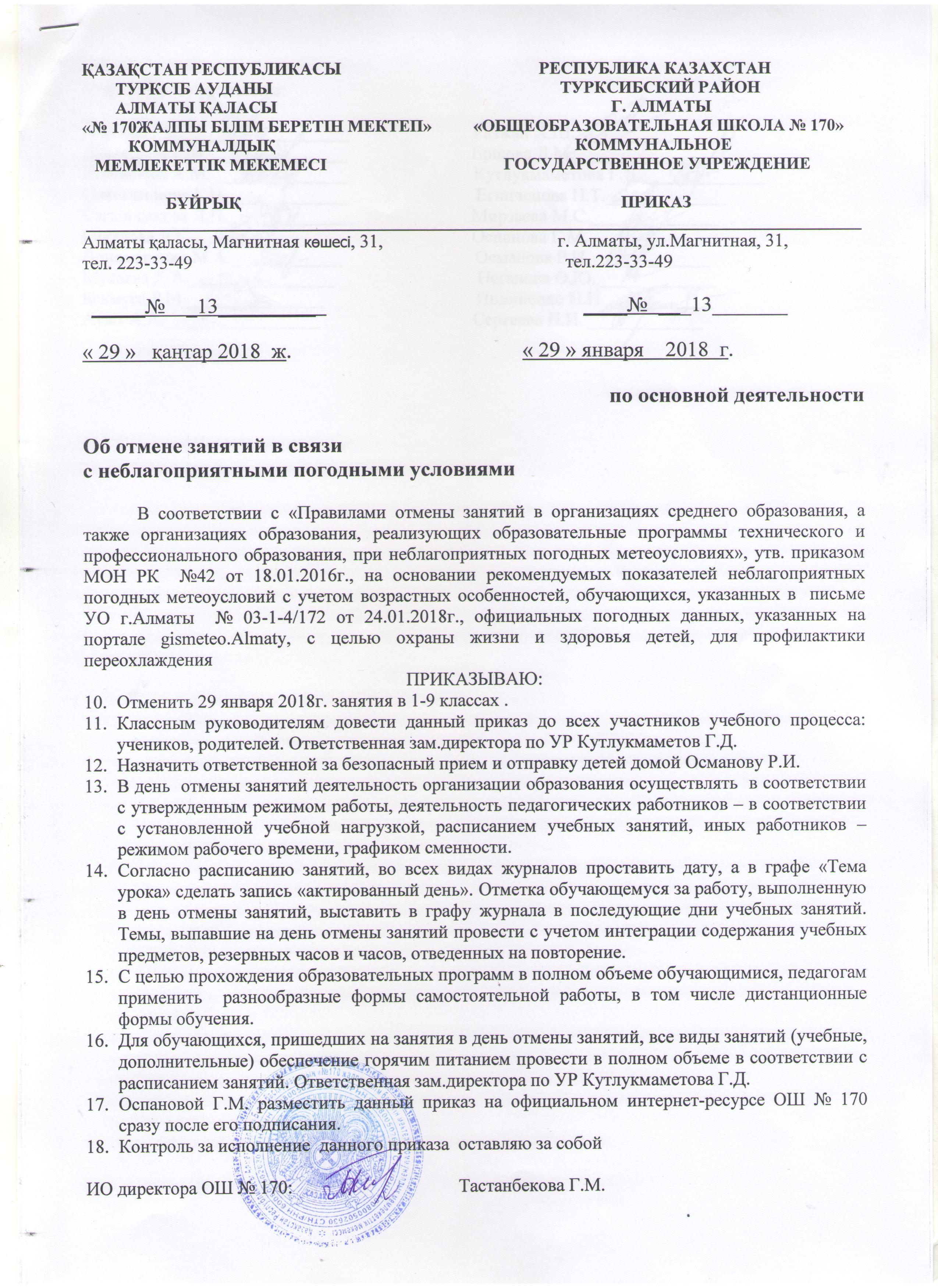 26 қаңтар 2018 0 1 2 3 4 5 қолайсыз ауа райына байланысты бас тарту туралы хабарлама/приказ об отмене занятий в связи неблагоприятными погодными условиями Осы беттің QR-коды:QR-код этой страницы: