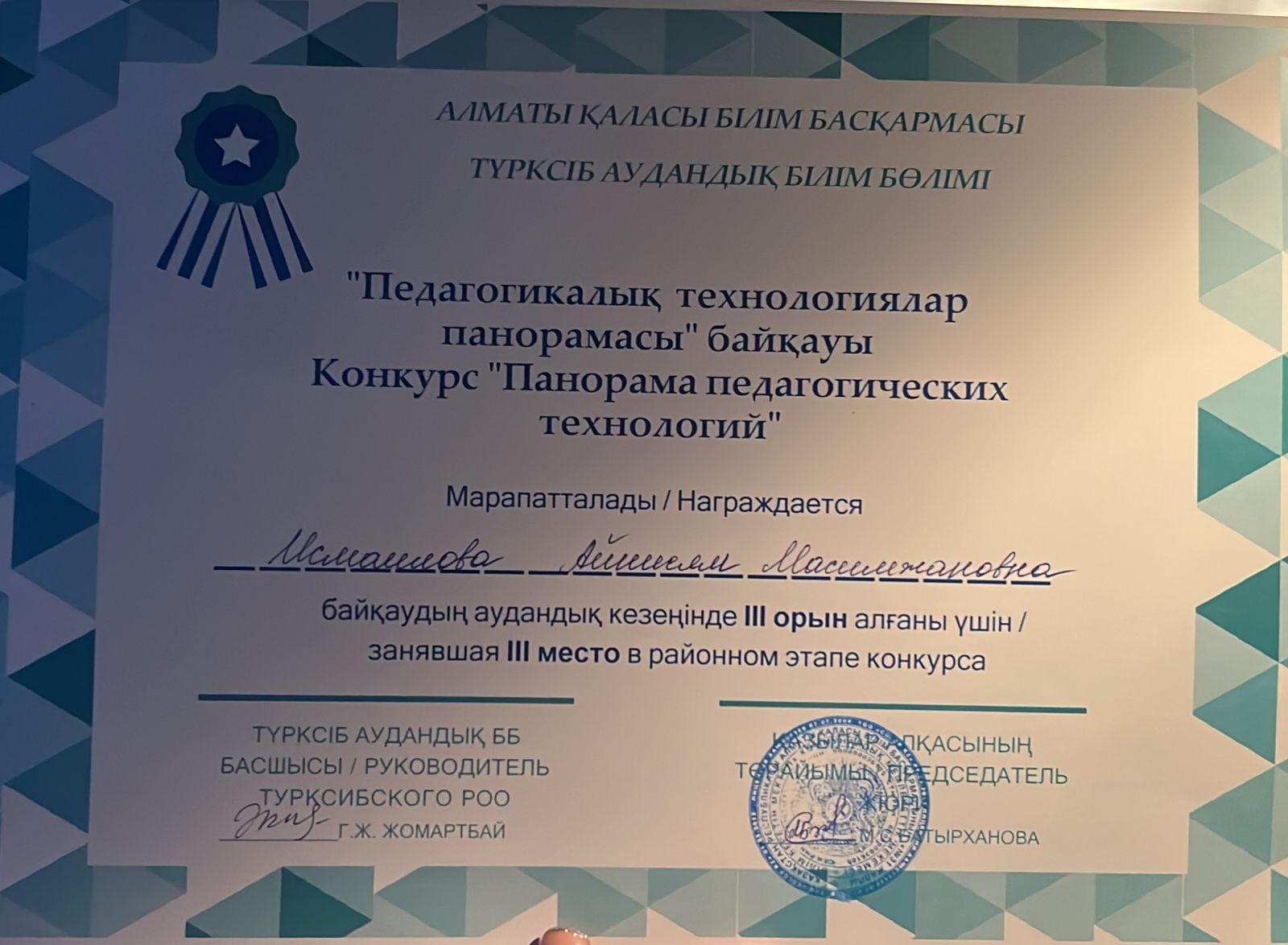 Учитель казахского языка и литературы Исмаилова А.М. заняла 3 место в фестивале педагогических идей.