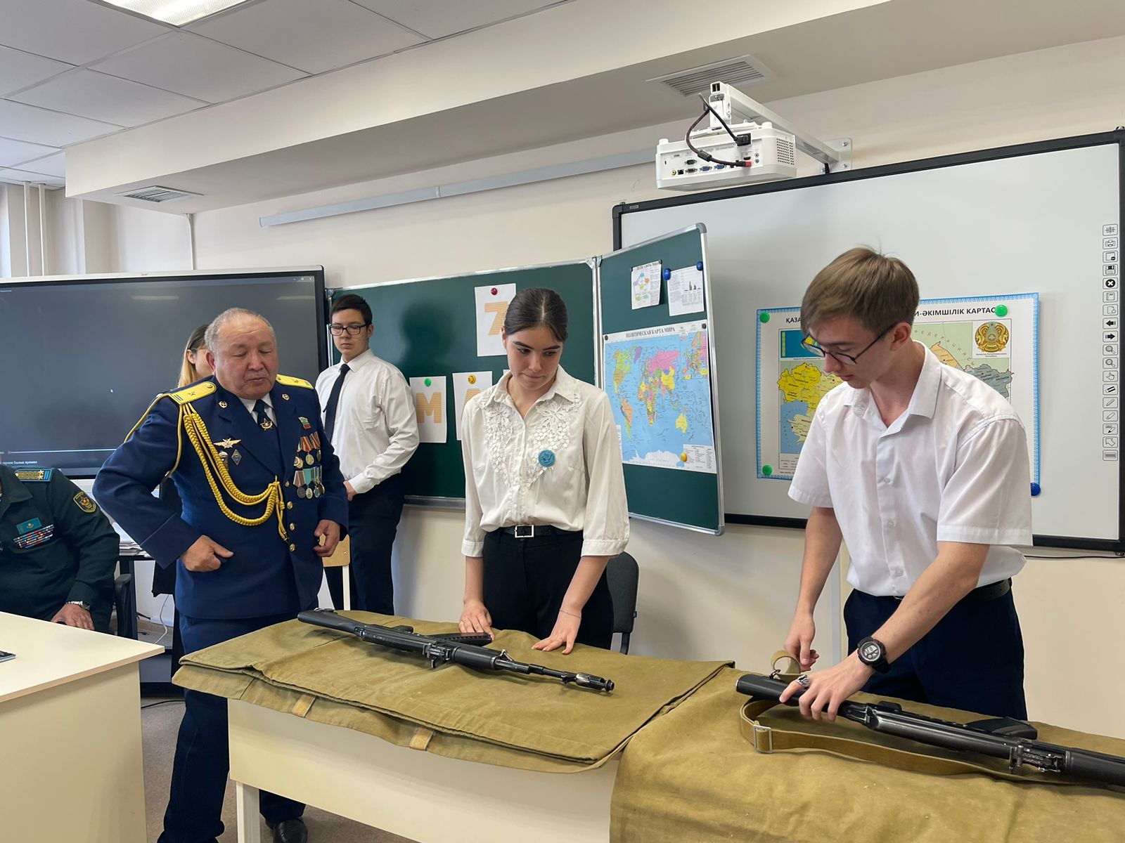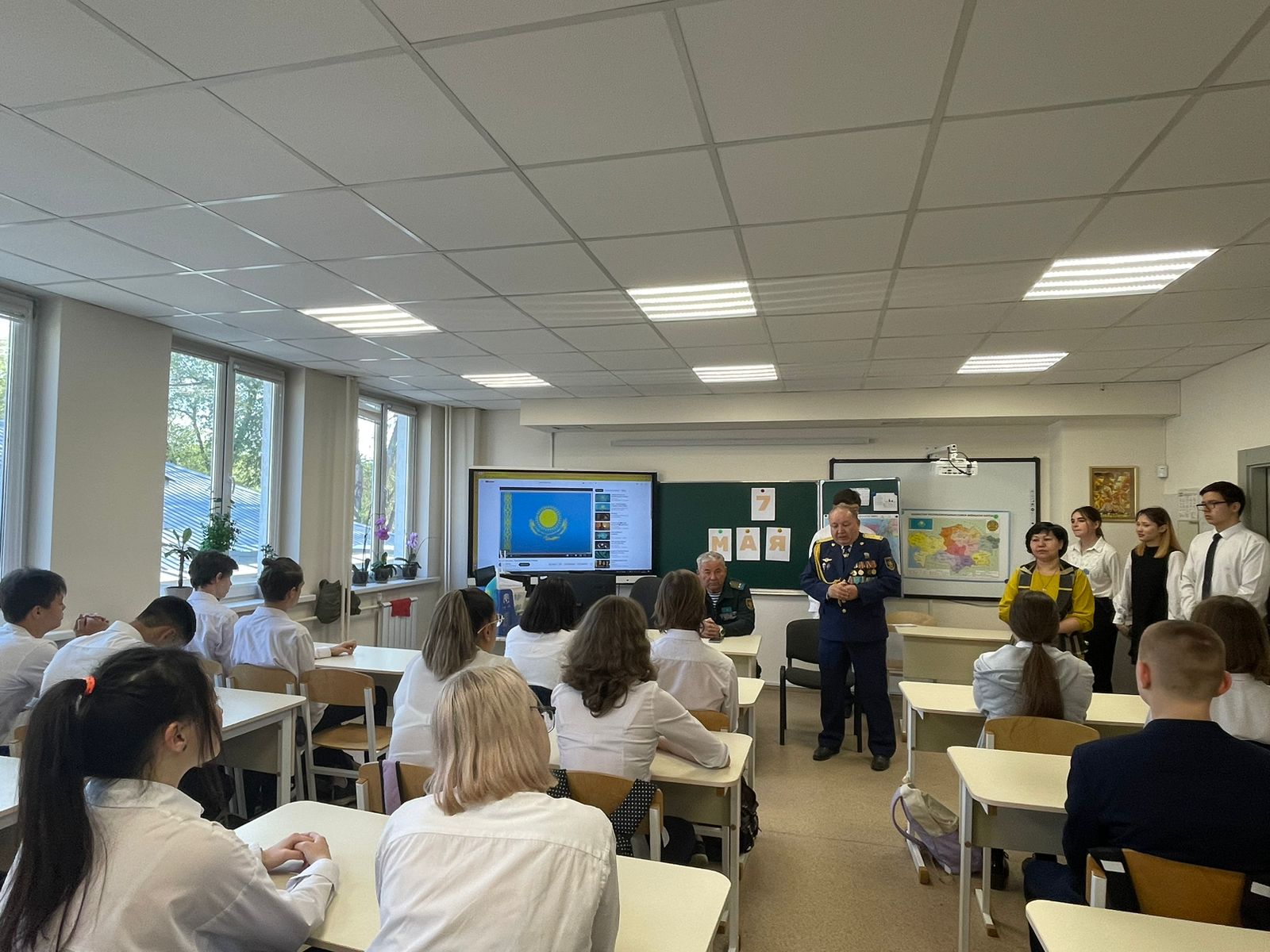 Алматы қаласы Түрксіб ауданы Ауғанстан ардагерлері одағының төрағасы подполковник Амраев Абутжан Абдусатарұлы және НВиТП оқытушысы майор Шаяхметов Әділхан Сейітұлының қатысуымен ерлік сабағы өтті. Шара барысында оқушылар тақпақ айтып, ән шырқады, сонымен қатар 11-сынып оқушылары мылтықты жылдамдықпен құрастыру және бөлшектеу дағдыларын көрсетті. Орыс тілі мен әдебиеті пәнінің мұғалімі Досымбаева Б.Т. «Тырналар» әнін орындады. Оқушылар подполковниктің әңгімелерін үлкен қызығушылықпен тыңдады.