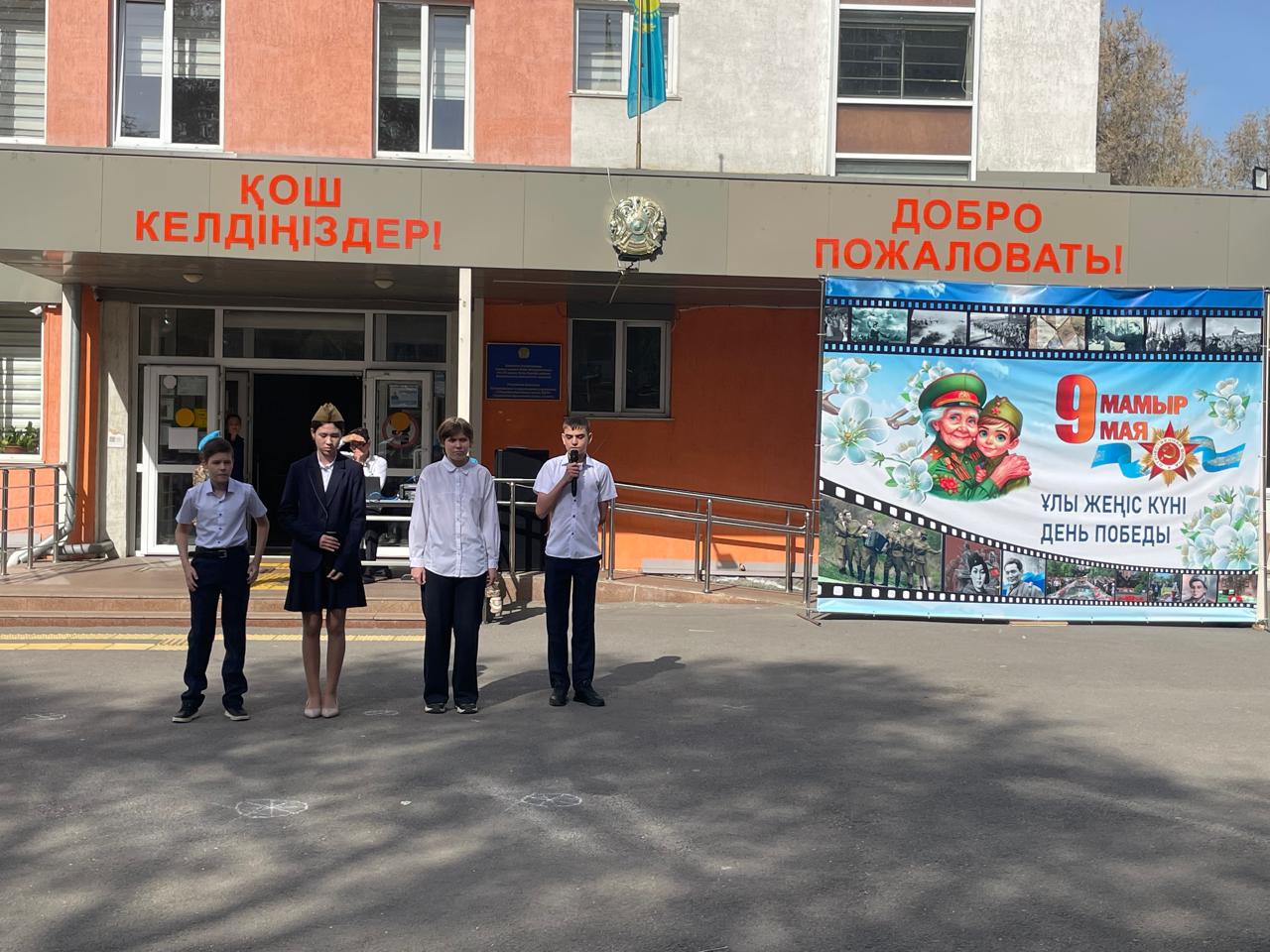 Бүгін мектепте Ұлы Отан соғысының 80 жылдығына және Отан қорғаушылар күніне арналған ерлік сабағы – салтанатты жиын өтті.Сегодня в школе была проведена торжественная линейка -урок мужества, посвященная 80-летию Великой Отечетвенной войны и Дня Защитника Отечества.