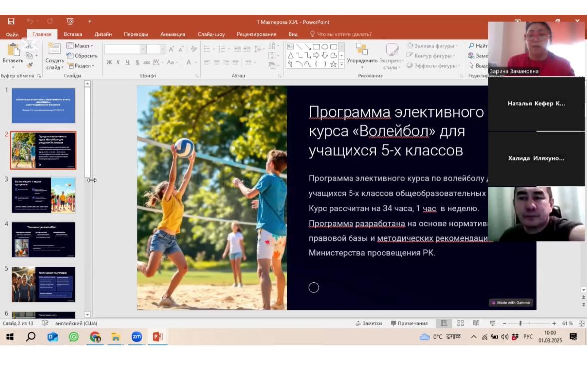 13 наурыз 2025 0 1 2 3 4 5 Трансляция по обемену опытом. Презентация авторской программы Махперовой Х.И. « волейбол для учащихся 5 классов». https://www.instagram.com/reel/DHLs5b6Mouu/?igsh=MWYyYnFuZHl0OGw5Zg== Осы беттің QR-коды:QR-код этой страницы: