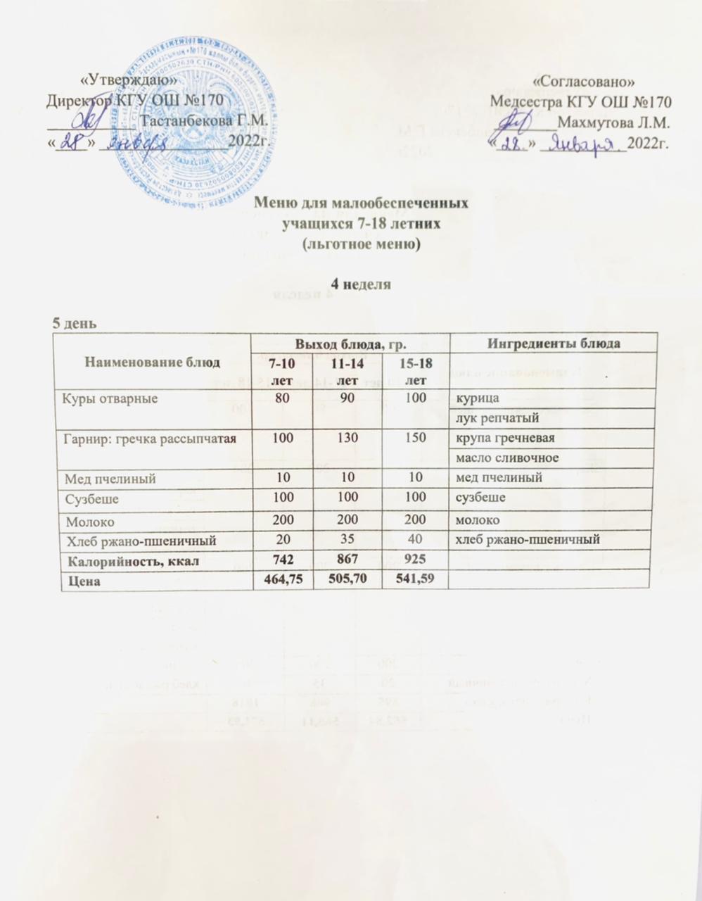 Қыс-көктем ас мәзірі/Меню зима весна 2021г.