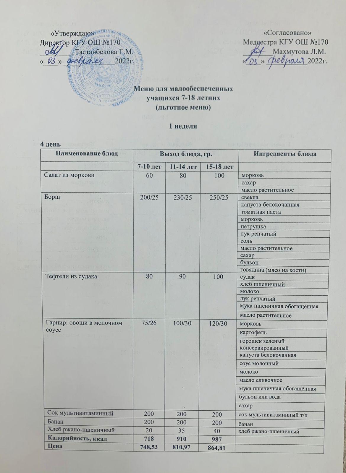 » Ас мәзірі/Меню 03.02.2022