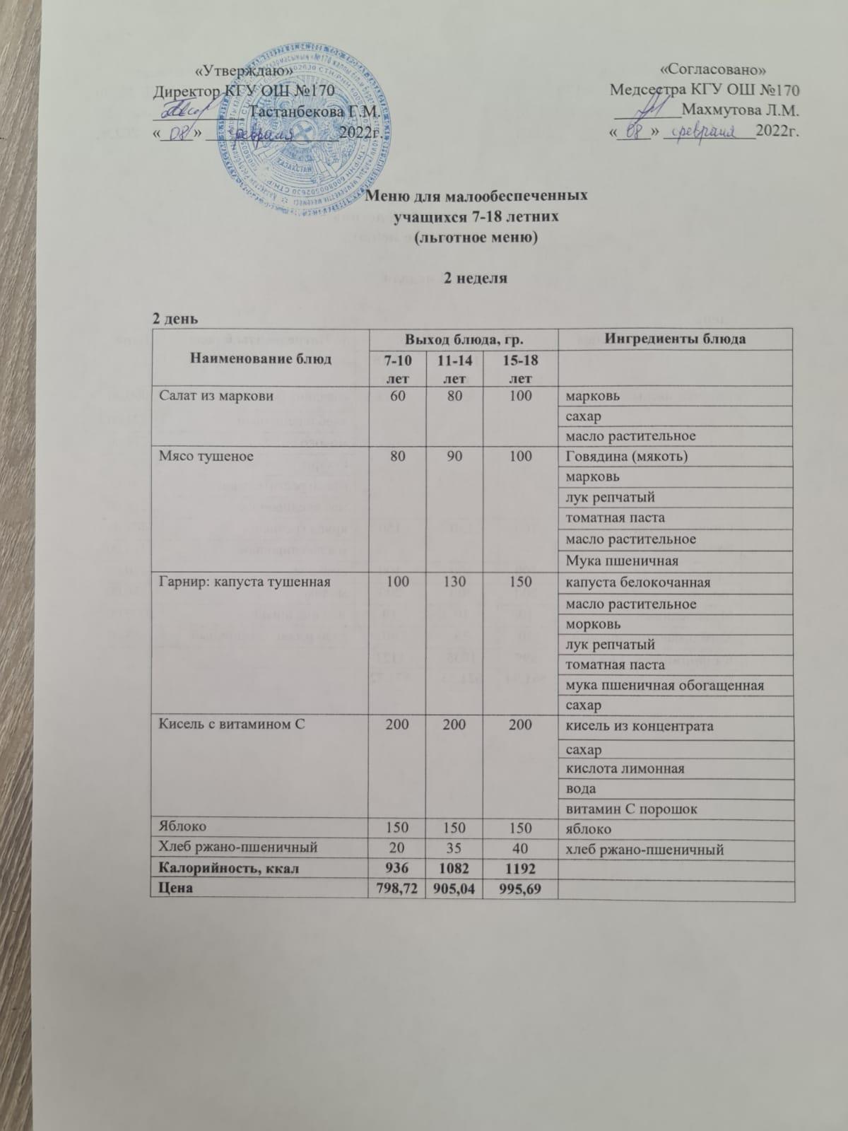 Ас мәзірі/Меню на 2022г. (зима-весна)