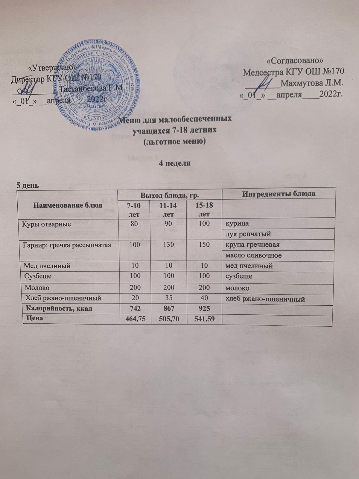 Ас мәзірі/Меню на 01.04.2022