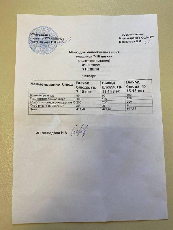 » Ас мәзірі/Меню на 01.09.2022