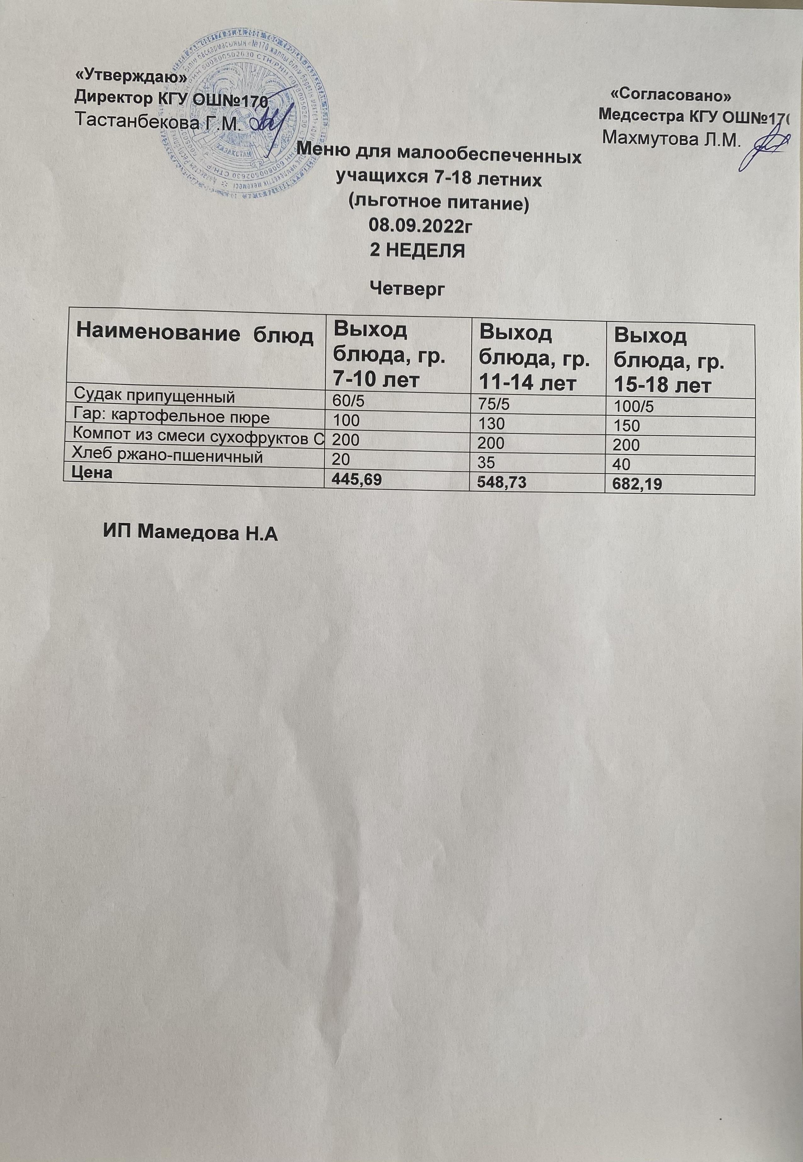Жаз-күз ас мәзірі/Меню питания лето-осень 2021-2022 год