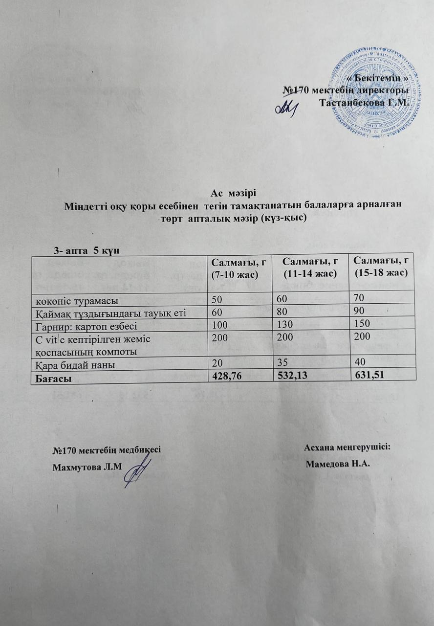 Қараша , желтоқсан айларына арналған ас мәзірі