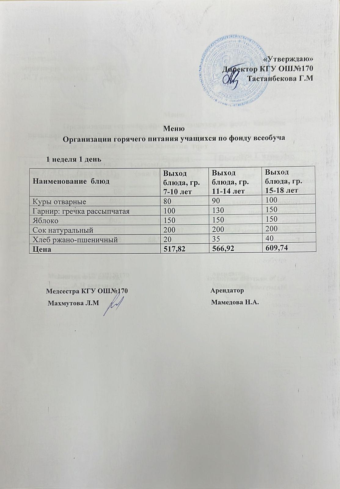 Жаз-күз ас мәзірі/Меню питания лето-осень 2021-2022 год