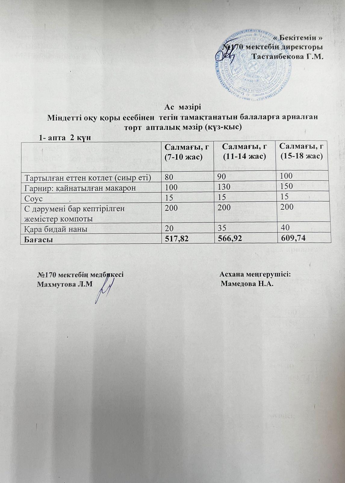 Қараша , желтоқсан айларына арналған ас мәзірі