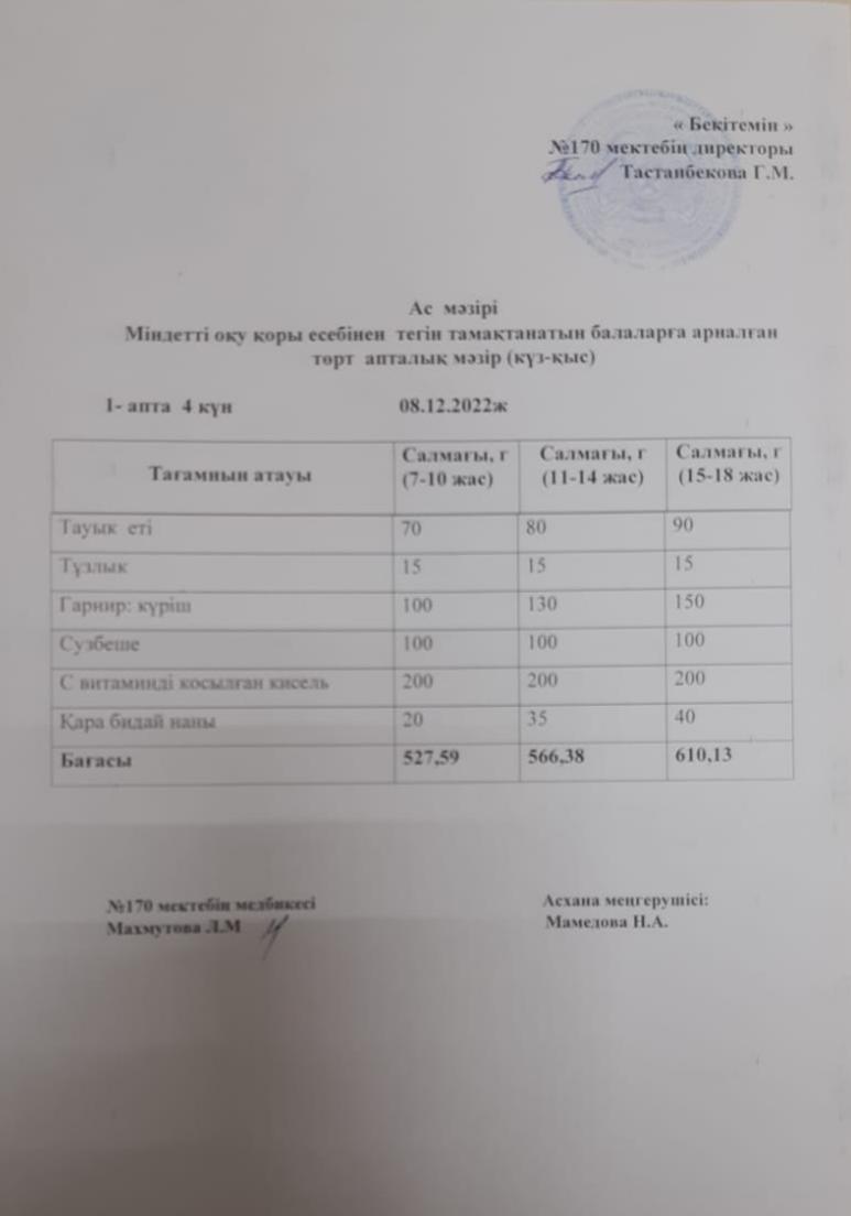 Қараша , желтоқсан айларына арналған ас мәзірі
