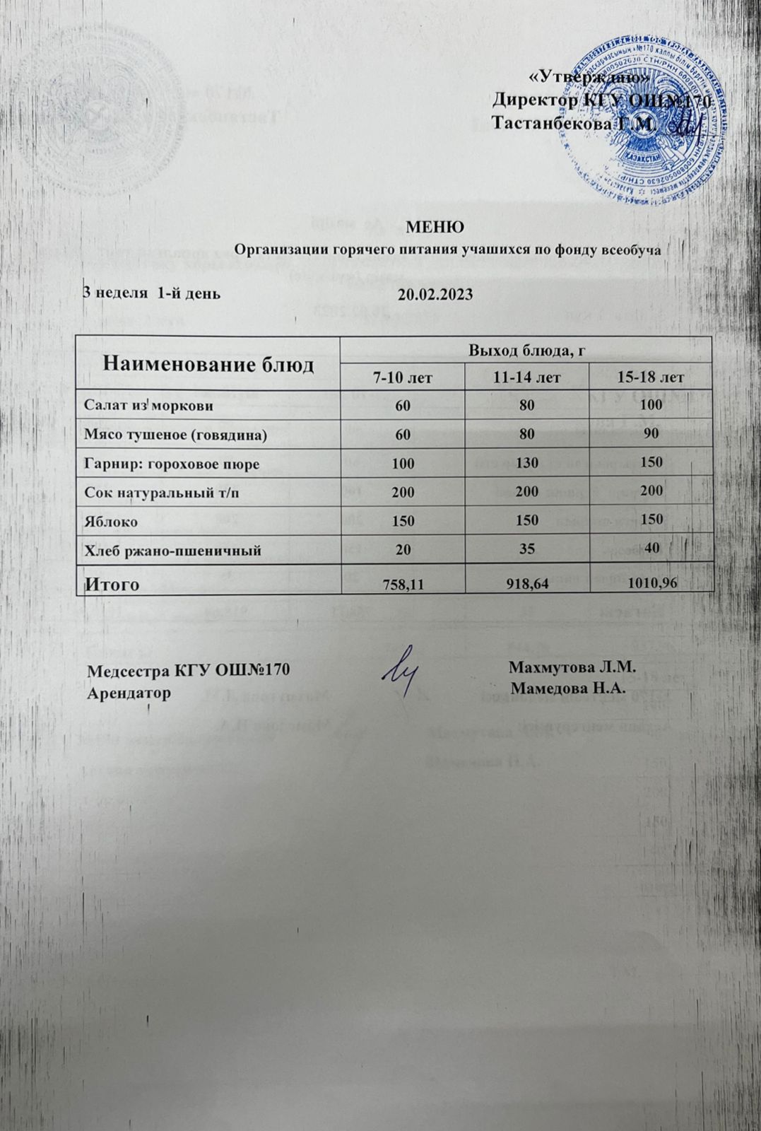 Ас мәзірі/ меню на 20.02.2023