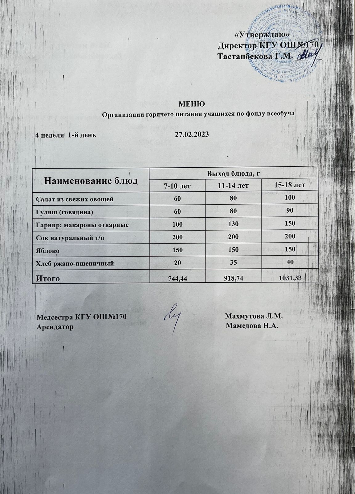 » Ас мәзірі/меню на 27.02.2023