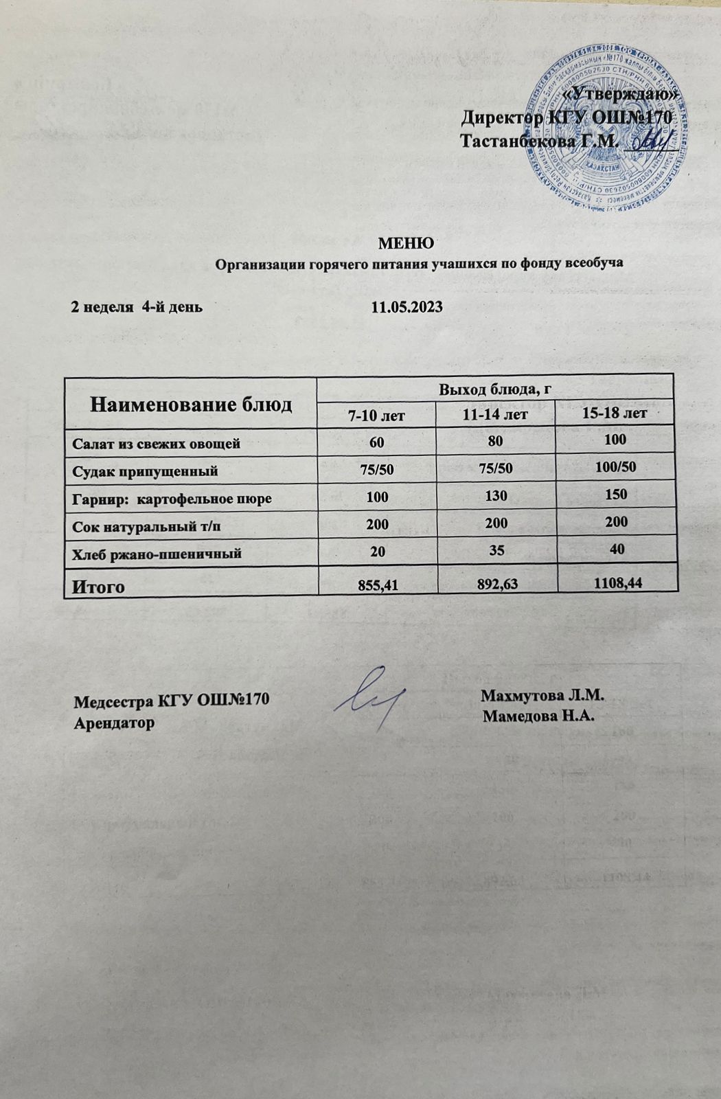 Ас мәзірі / меню на 11.05.2023