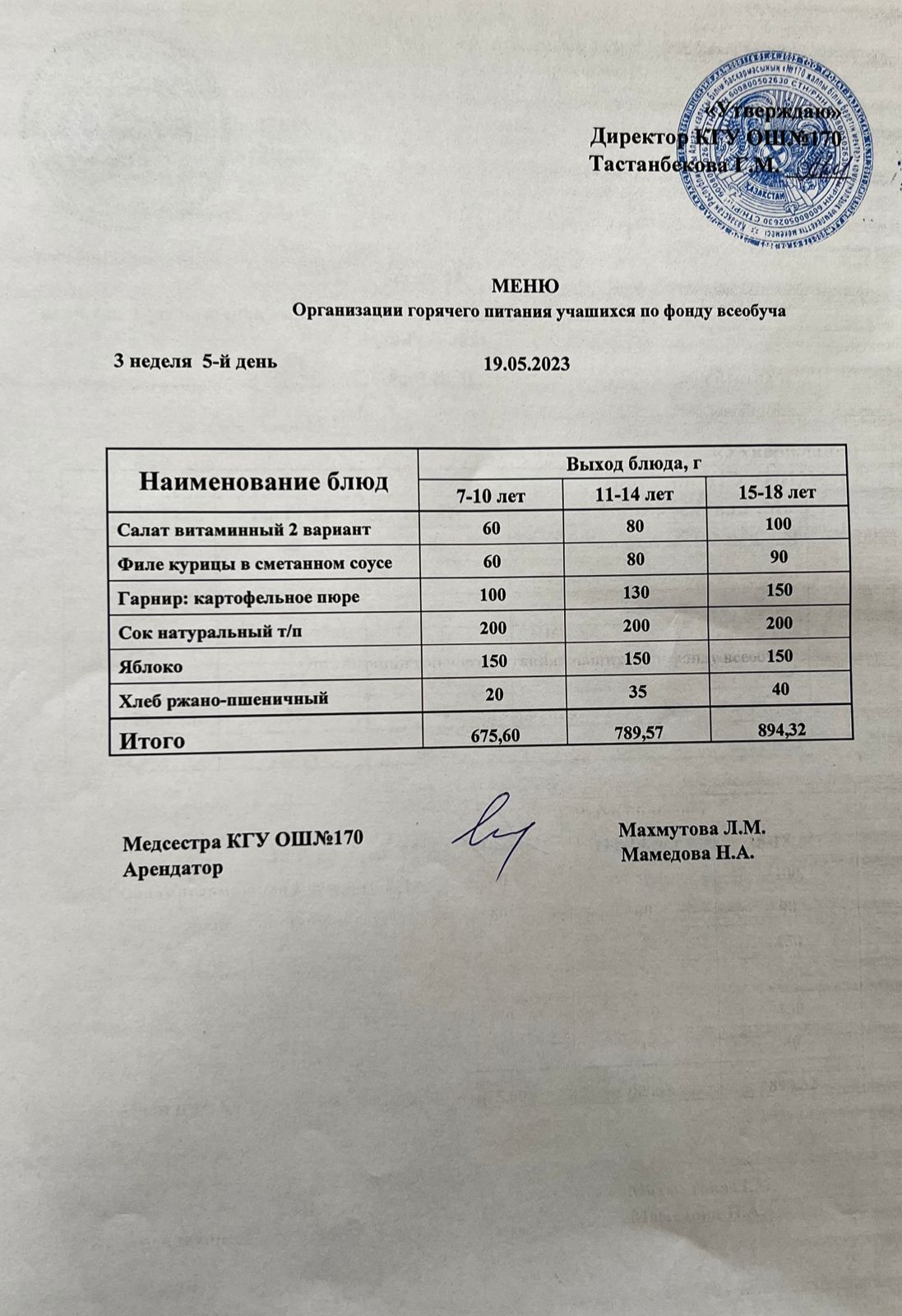 Ас мәзірі / меню на 19.05.2023
