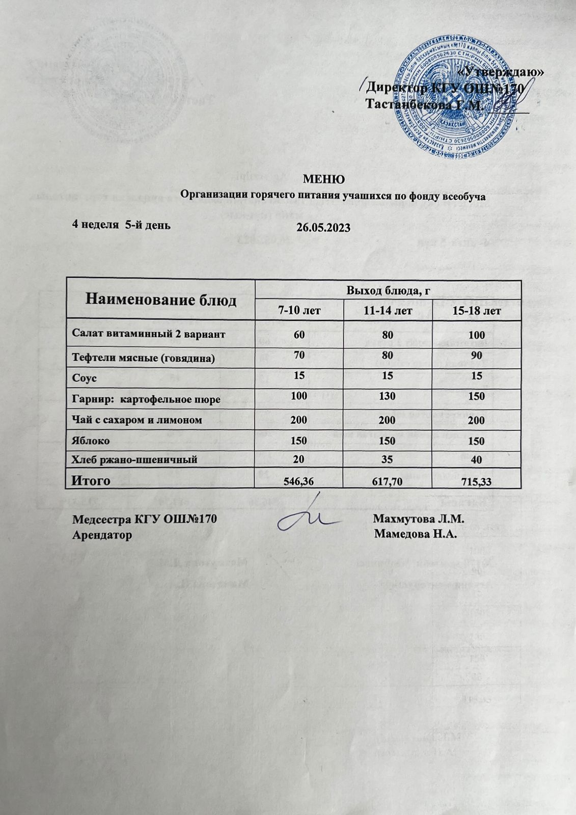 Жаз-күз ас мәзірі/Меню лето-осень на 2019 год