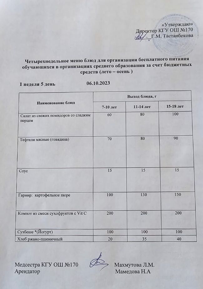 » Ас мәзірі / меню на 06.10.2023