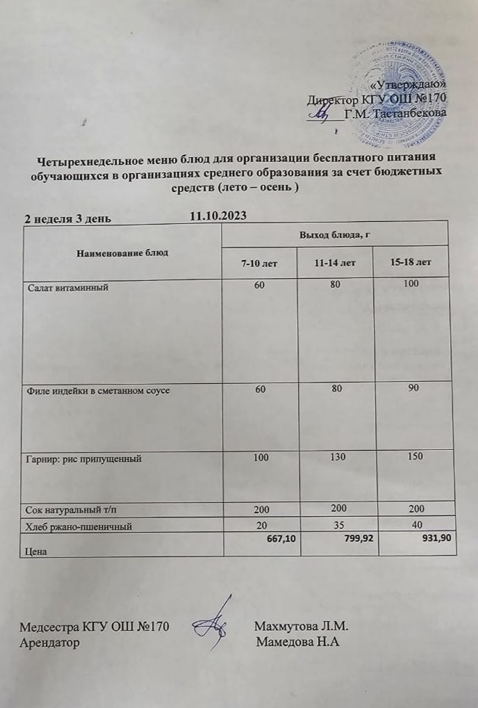 Ас мізірі / меню на 11.10.2023