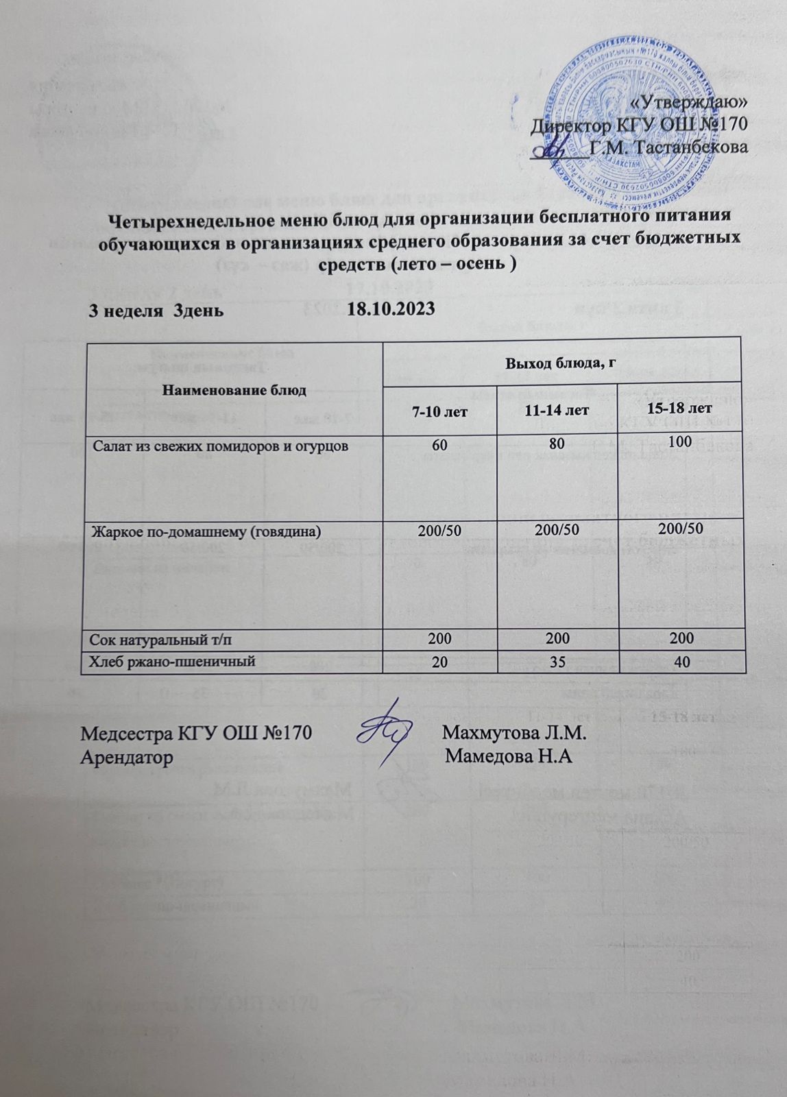 Жазға лагерь ас мәзірі/меню пришкольного лагеря на 09.06.2023