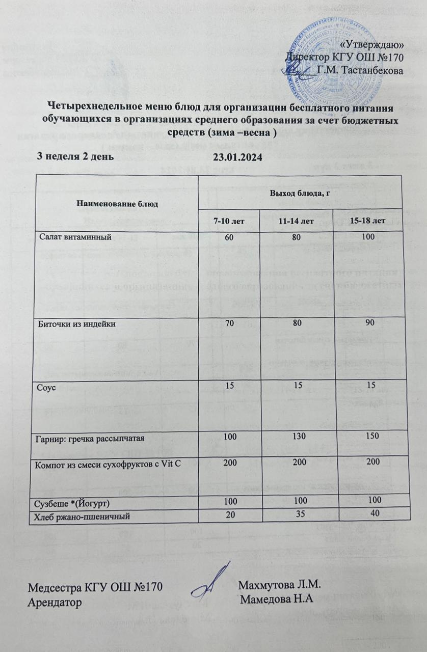 » Ас мәзірі/меню на 23.01.2024