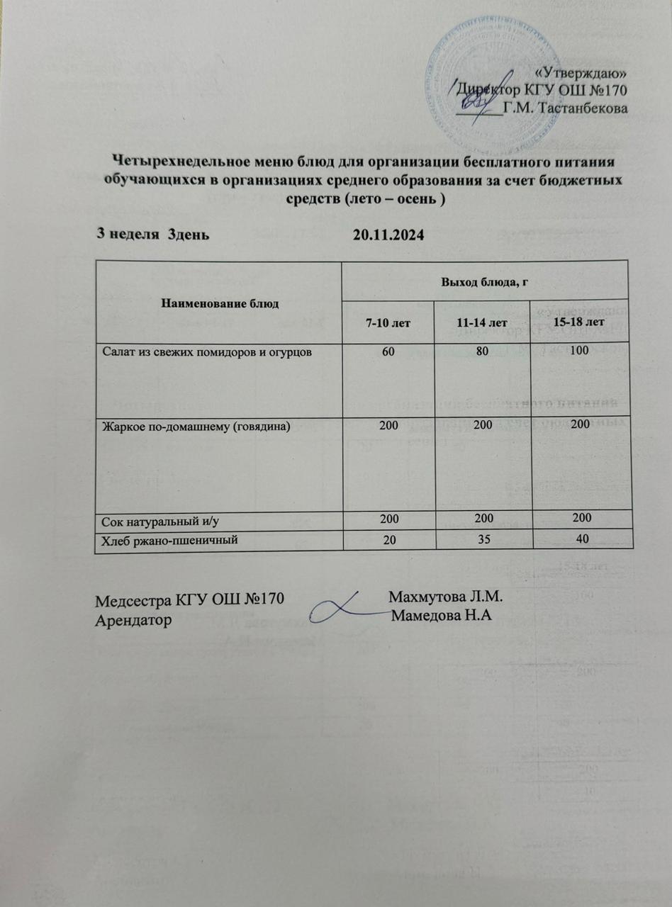 Жазға лагерь ас мәзірі/меню пришкольного лагеря на 28.05.2024ж.