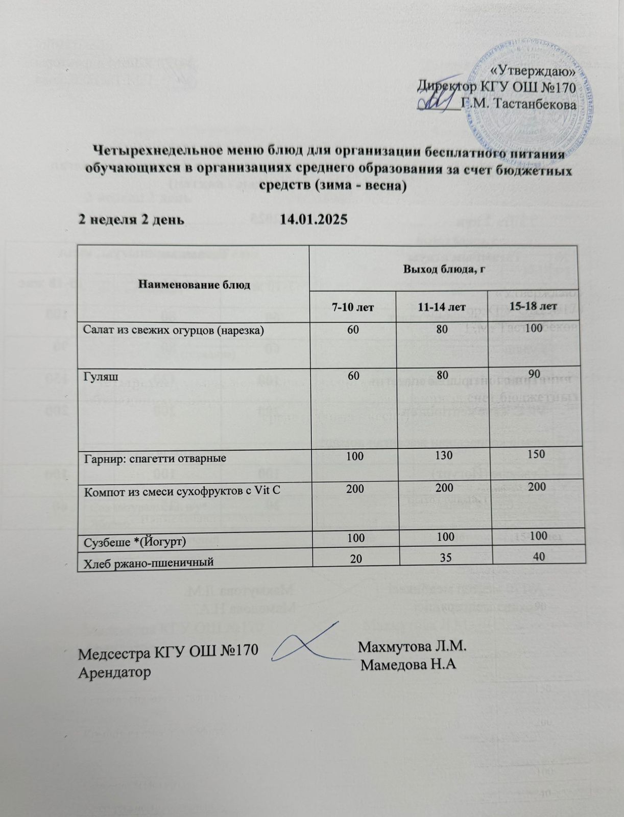 Мектеп асханасын тексеру нәтижесінің №4 АКТі / АКТ №4 проверки в школьной столовой