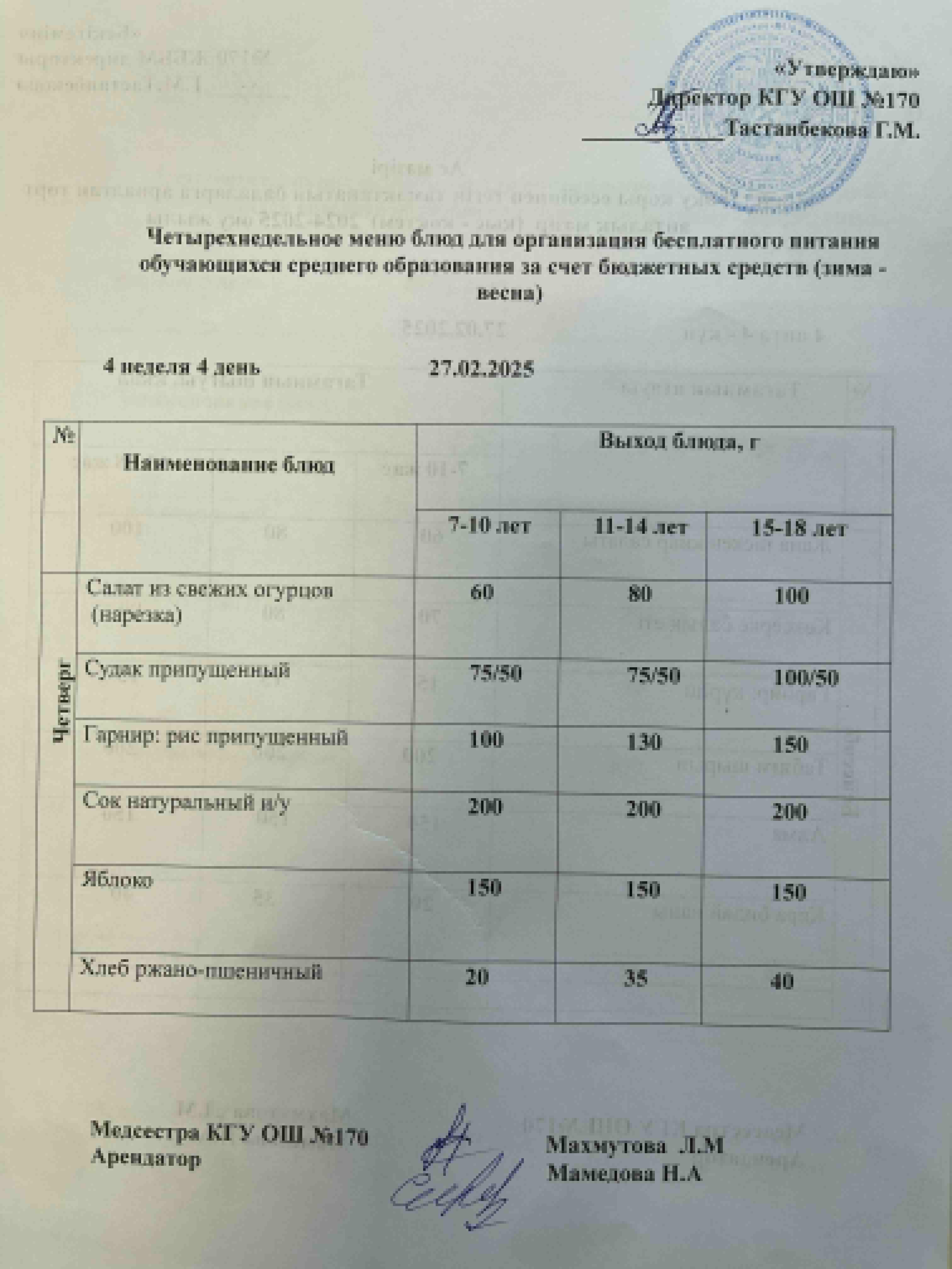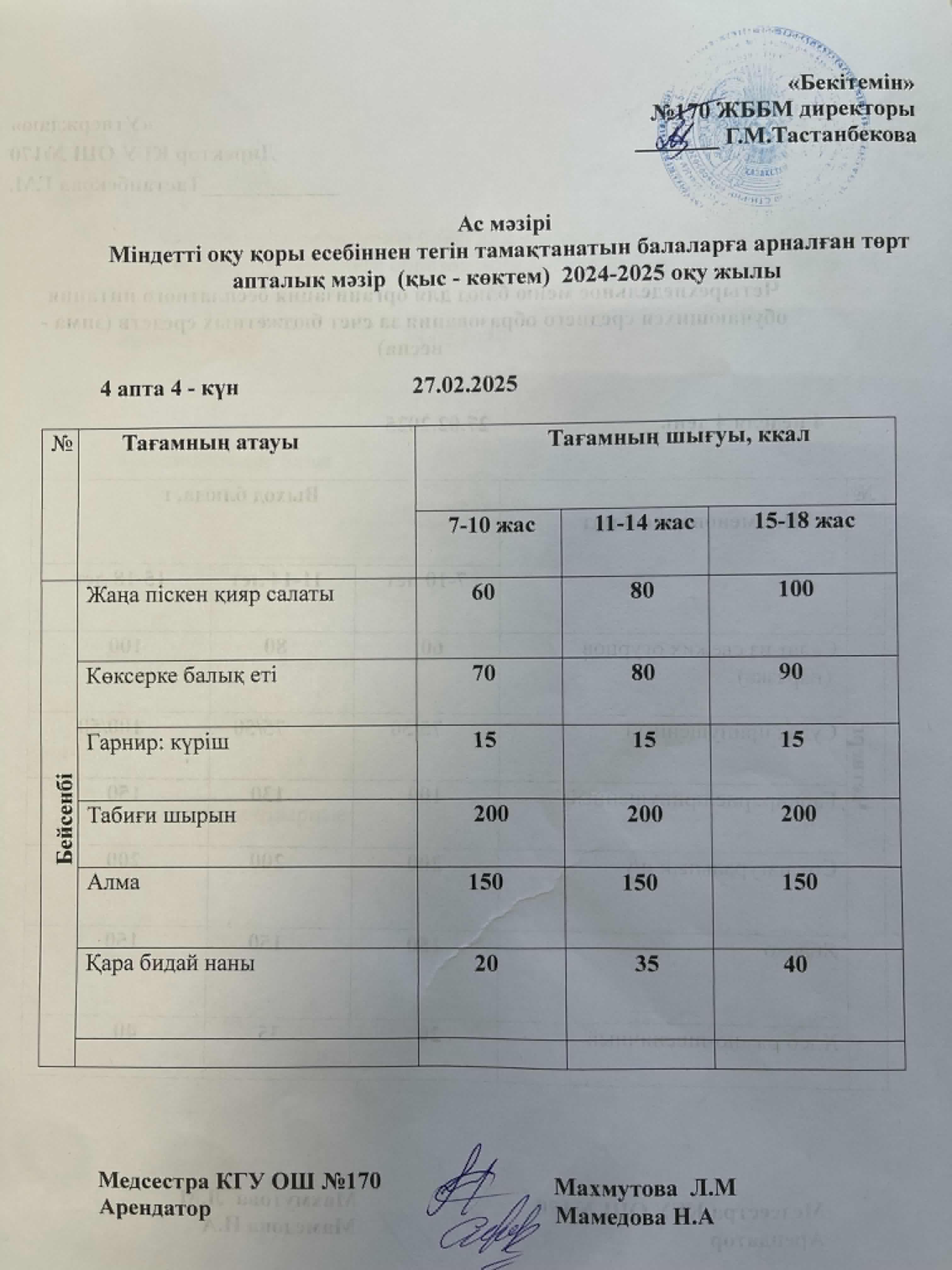 Ас мәзірі / Меню 27.02.2025