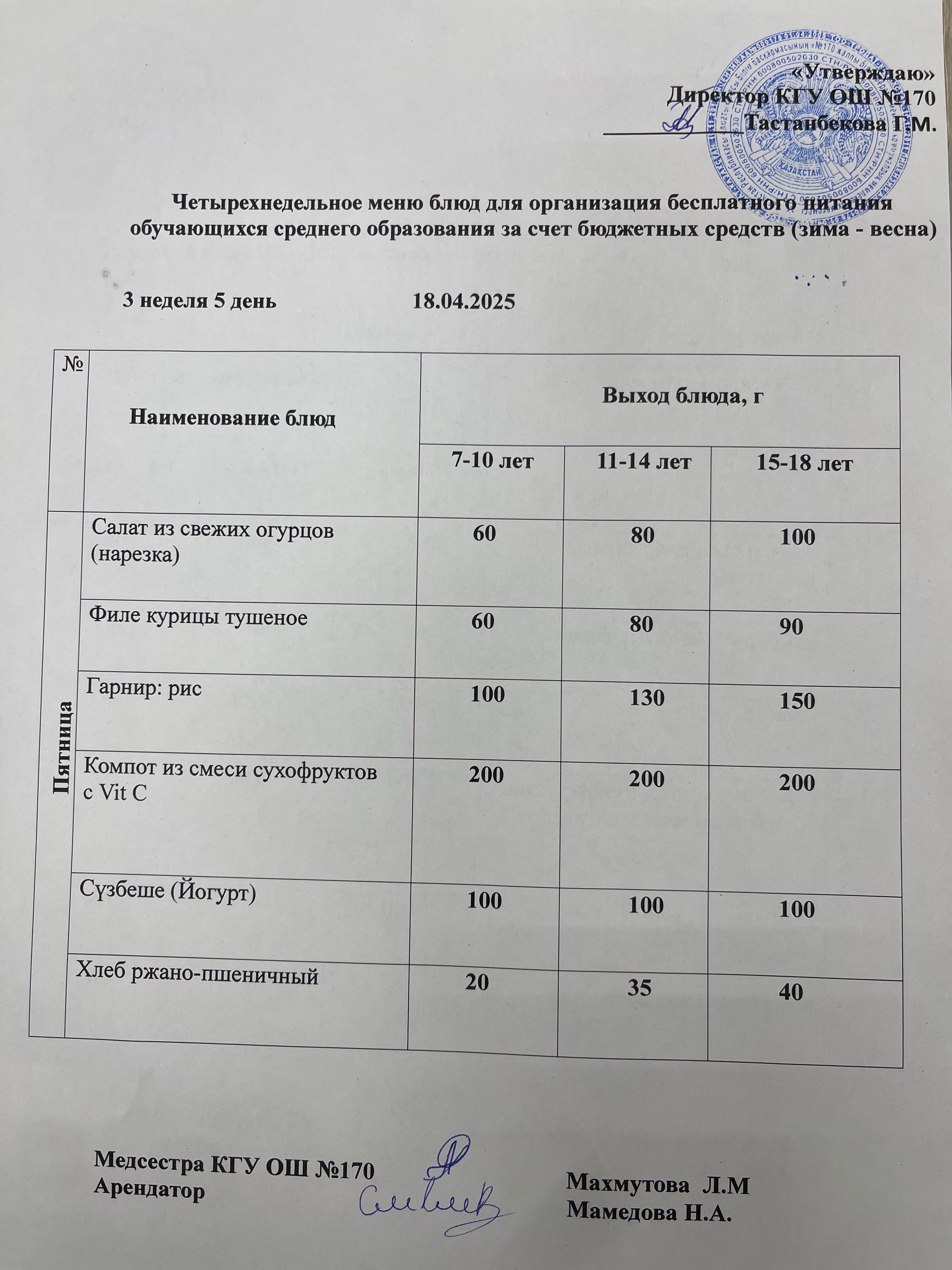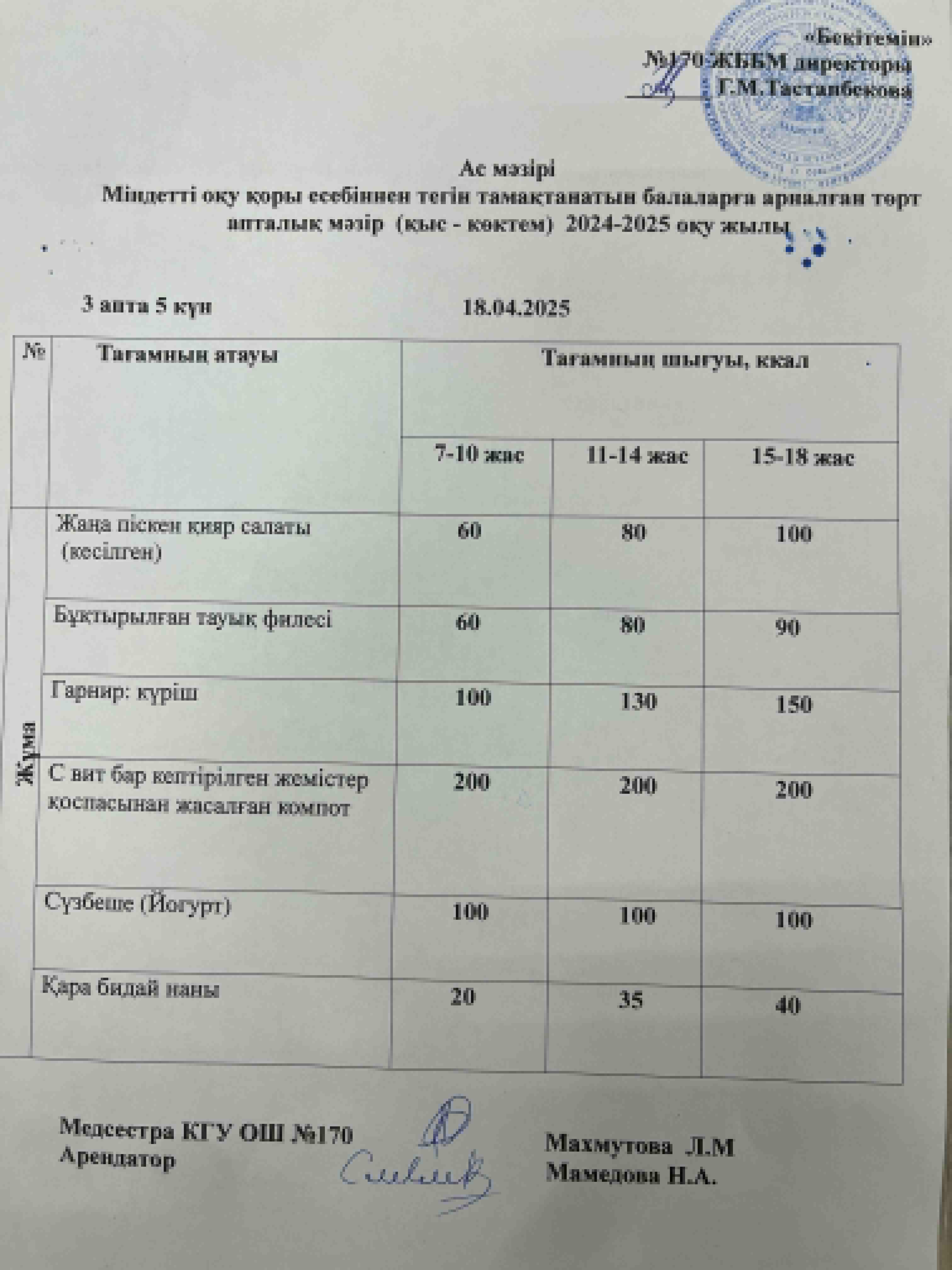 Ас мәзірі / Меню 18.04.2025
