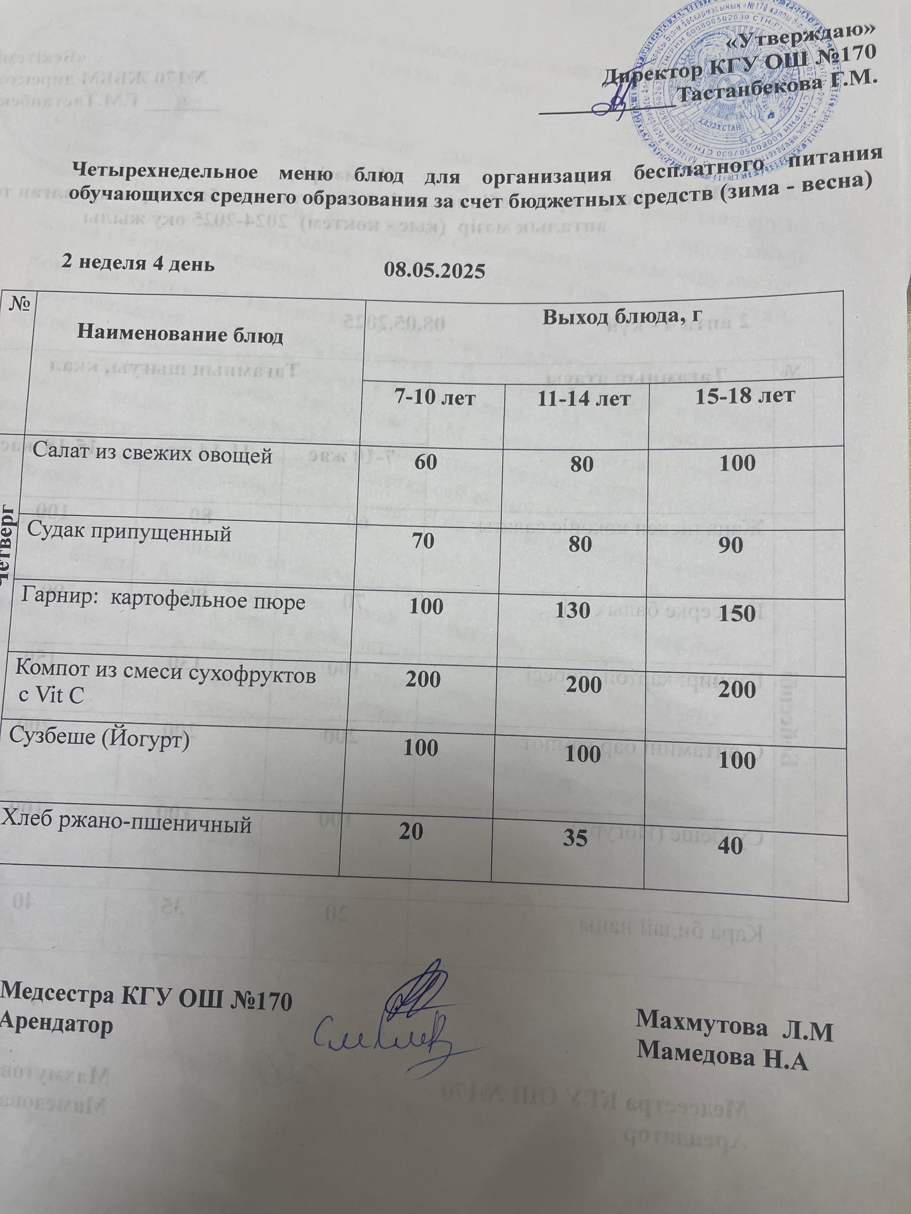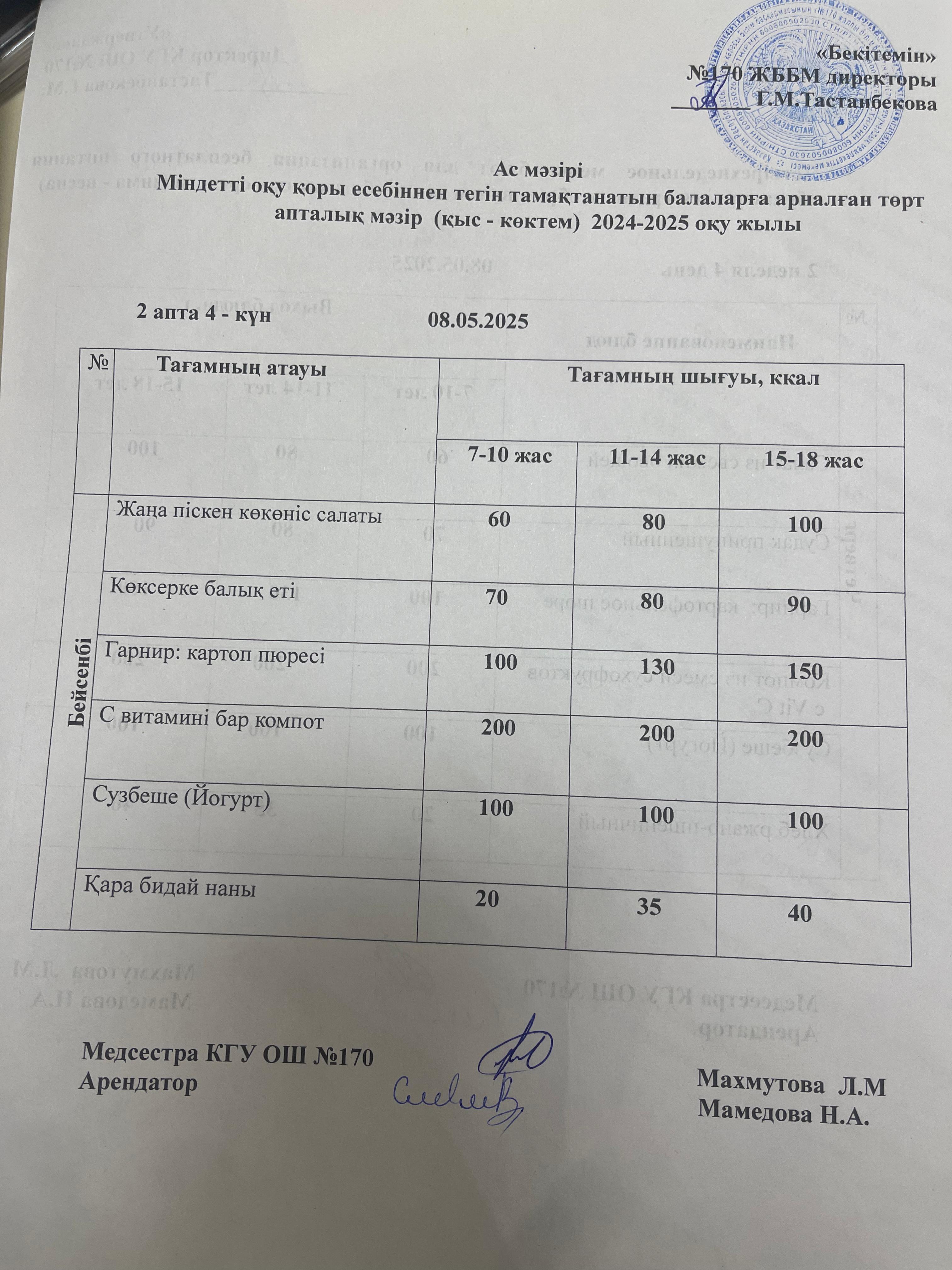 Ас мәзірі / Меню 08.05.2025