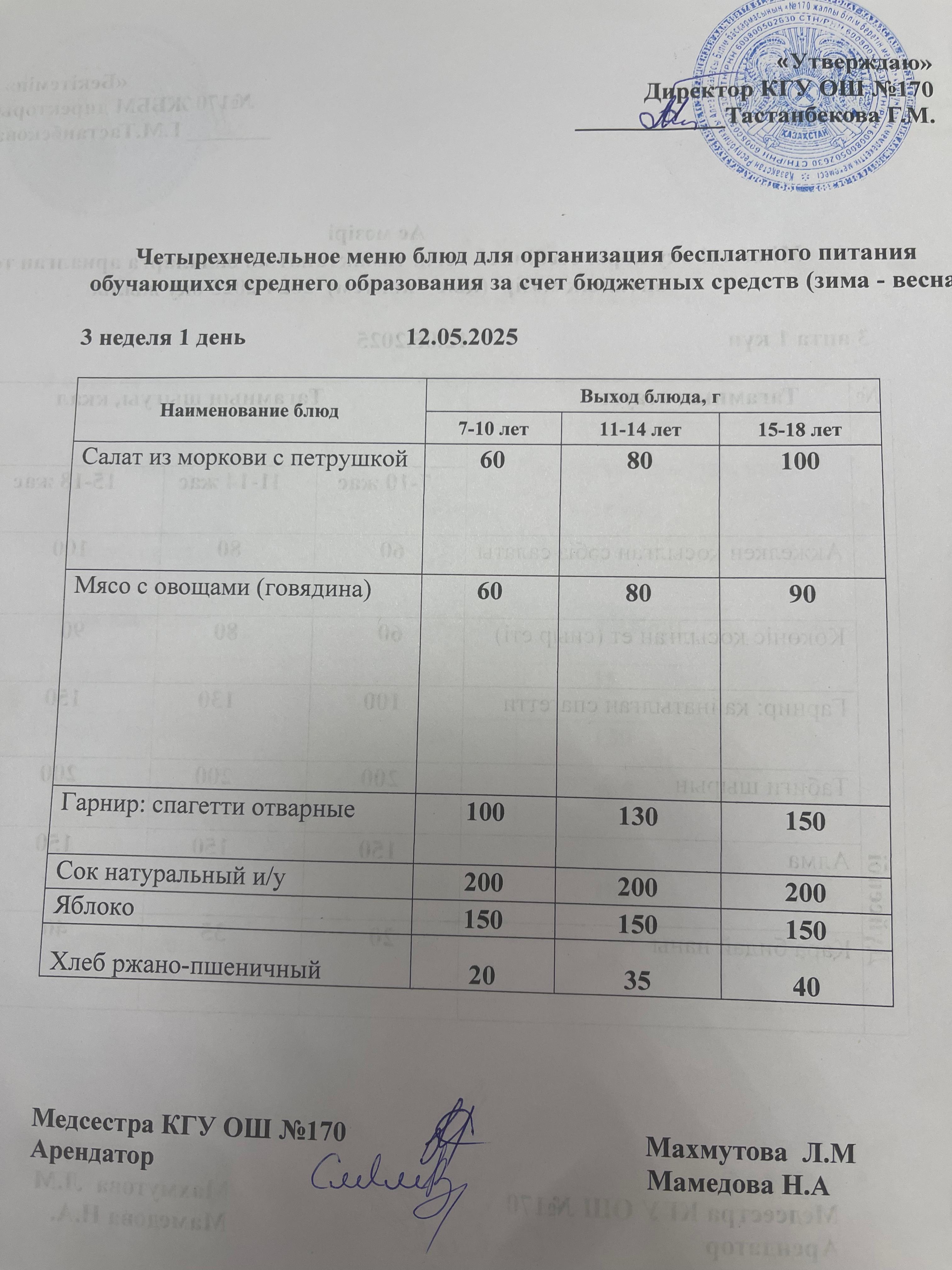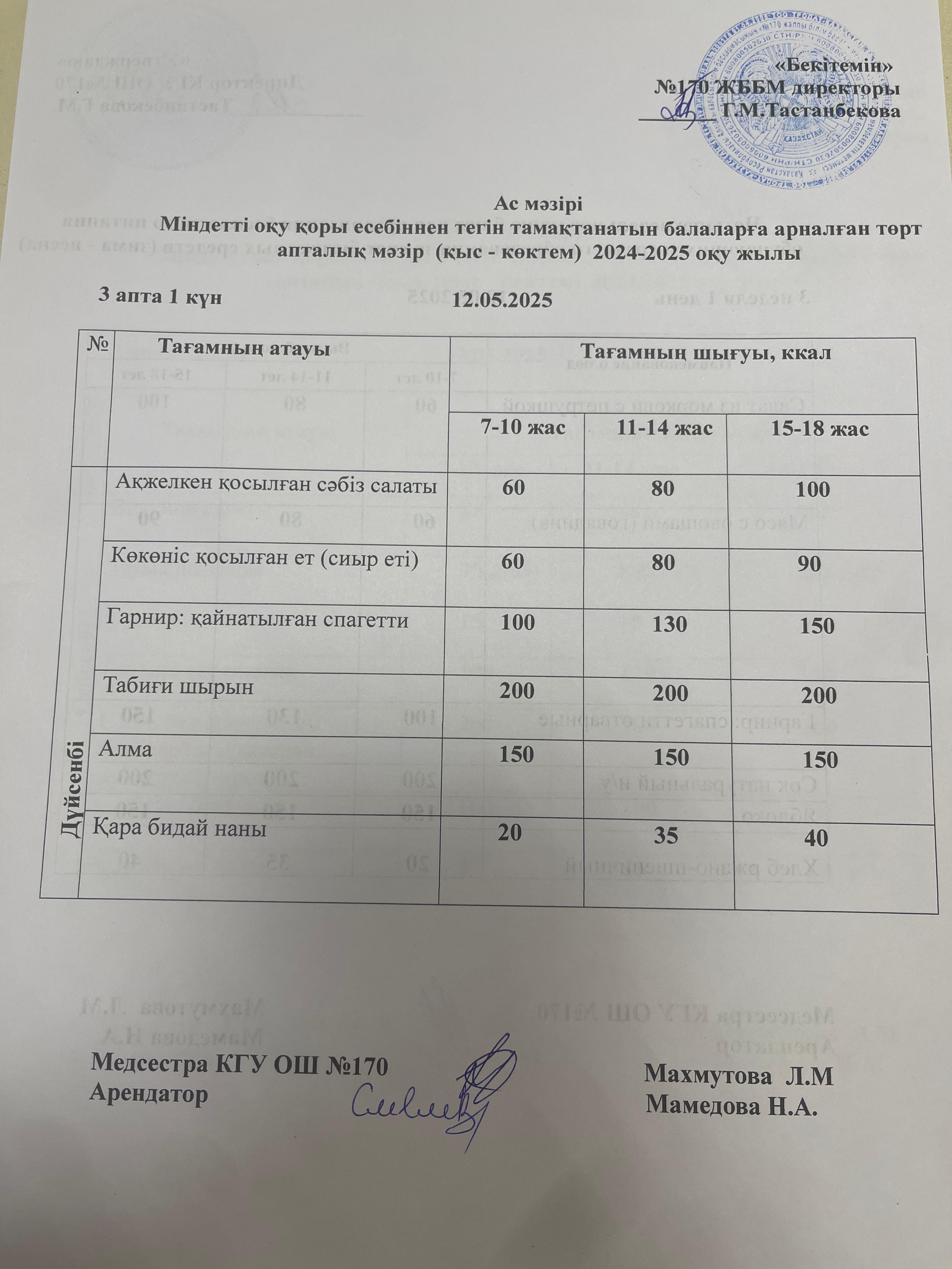 Ас мәзірі / Меню 12.05.2025