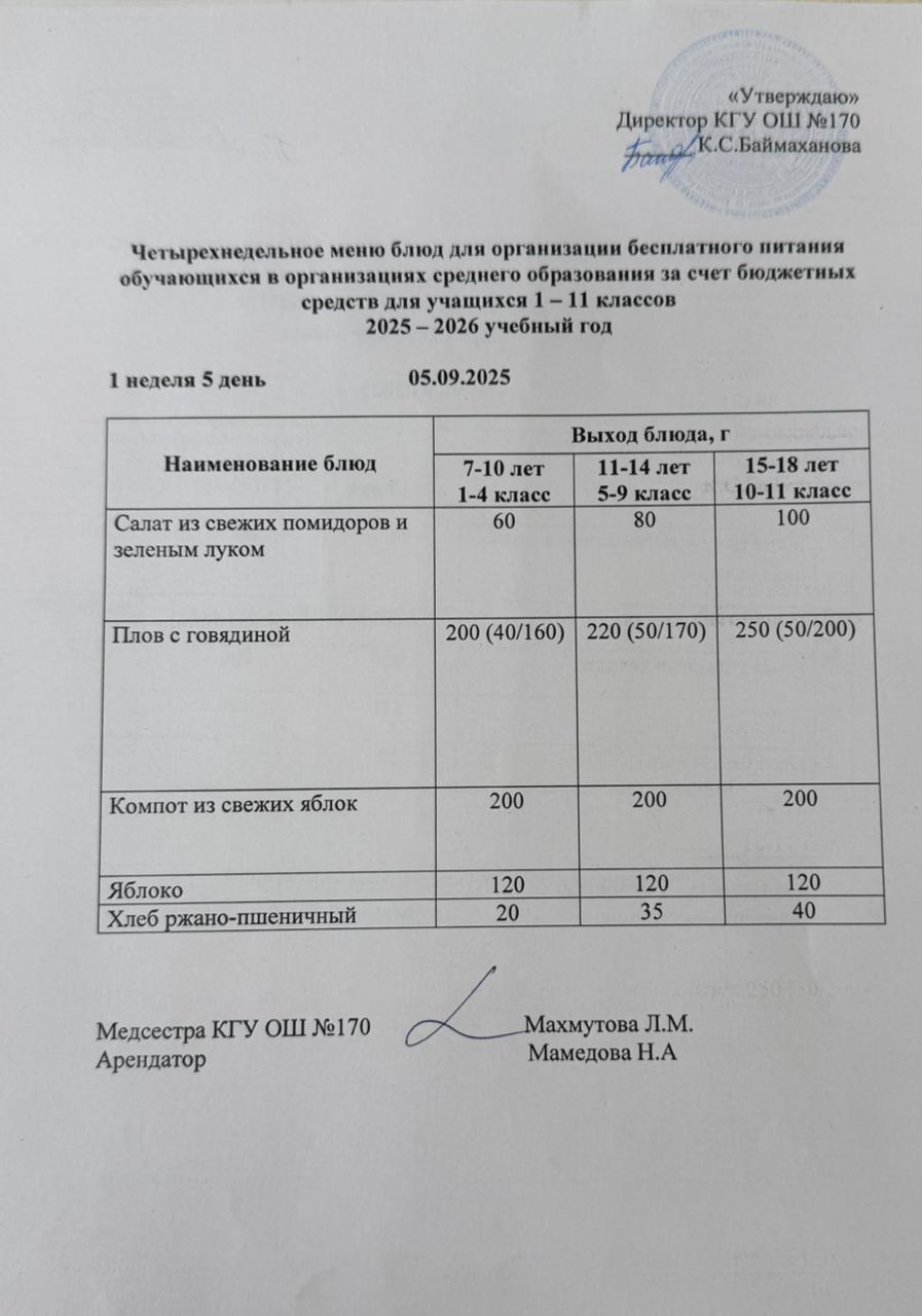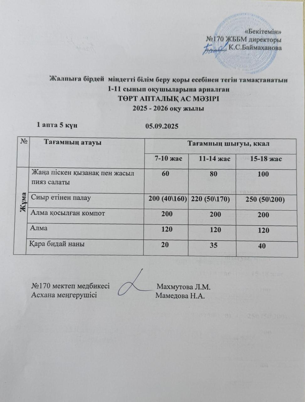 Ас мәзірі / Меню 05.09.2025