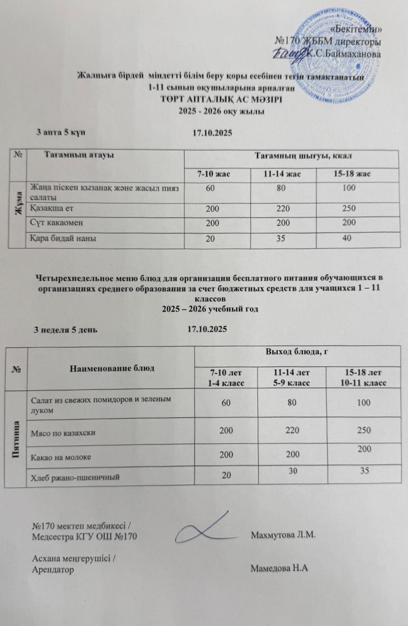 Ас мәзірі / Меню 17.10.2025