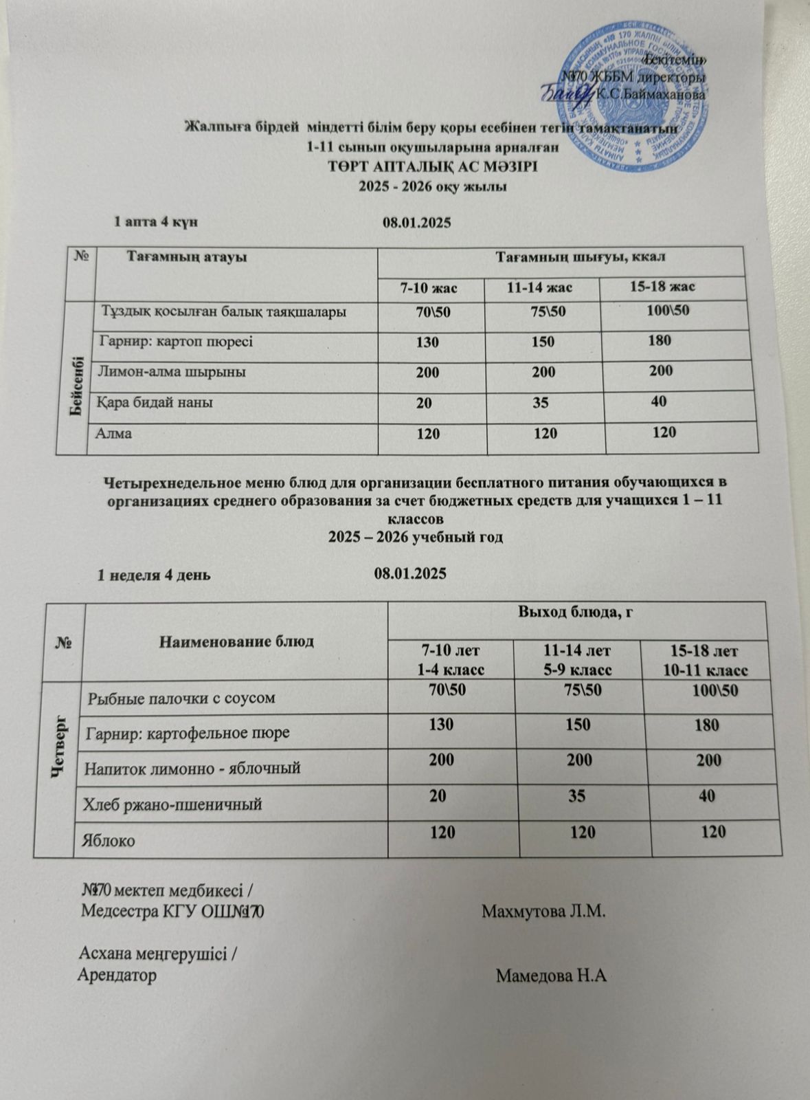 Қыркүйек айындағы ас мәзірі / меню на сентябрь 2025г