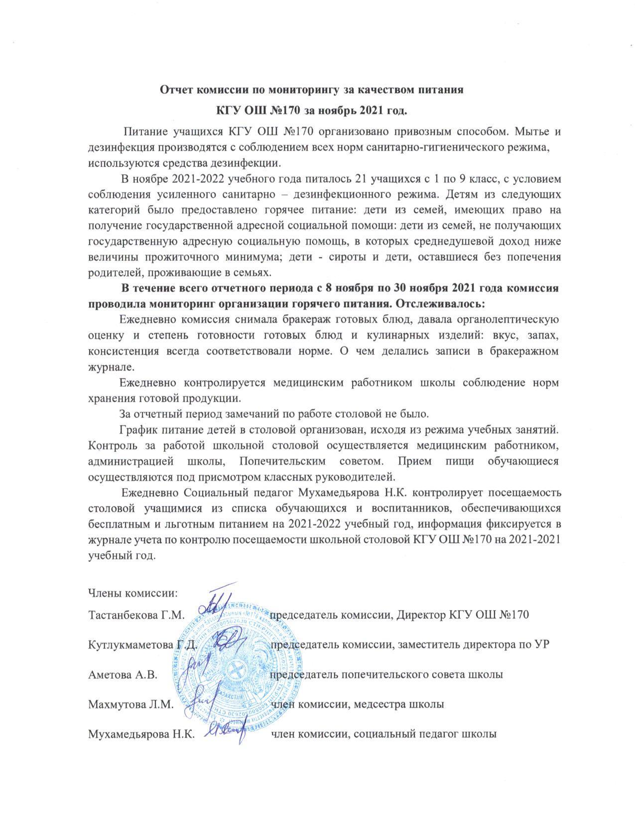 30 қараша 2021 0 1 2 3 4 5 Тамақтану сапасының мониторингі жөніндегі комиссияның есебі/Отчет комиссии по мониторингу за качеством питания за ноябрь 2021г. Осы беттің QR-коды:QR-код этой страницы:
