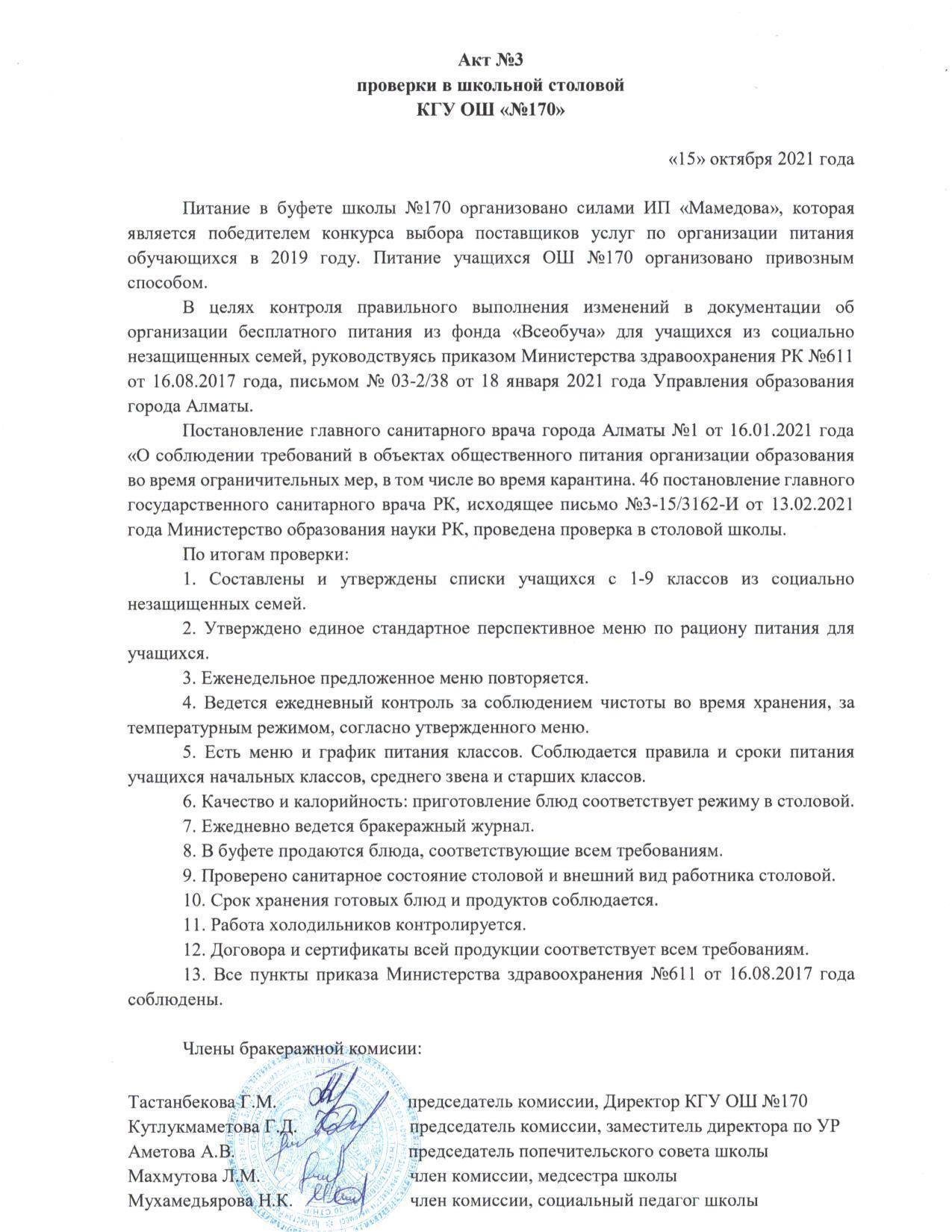 15 қазан 2021 0 1 2 3 4 5 Мектеп асханасын тексеру нәтижесінің №3 АКТі /Акт №3 проверки школьной столовой Осы беттің QR-коды:QR-код этой страницы: