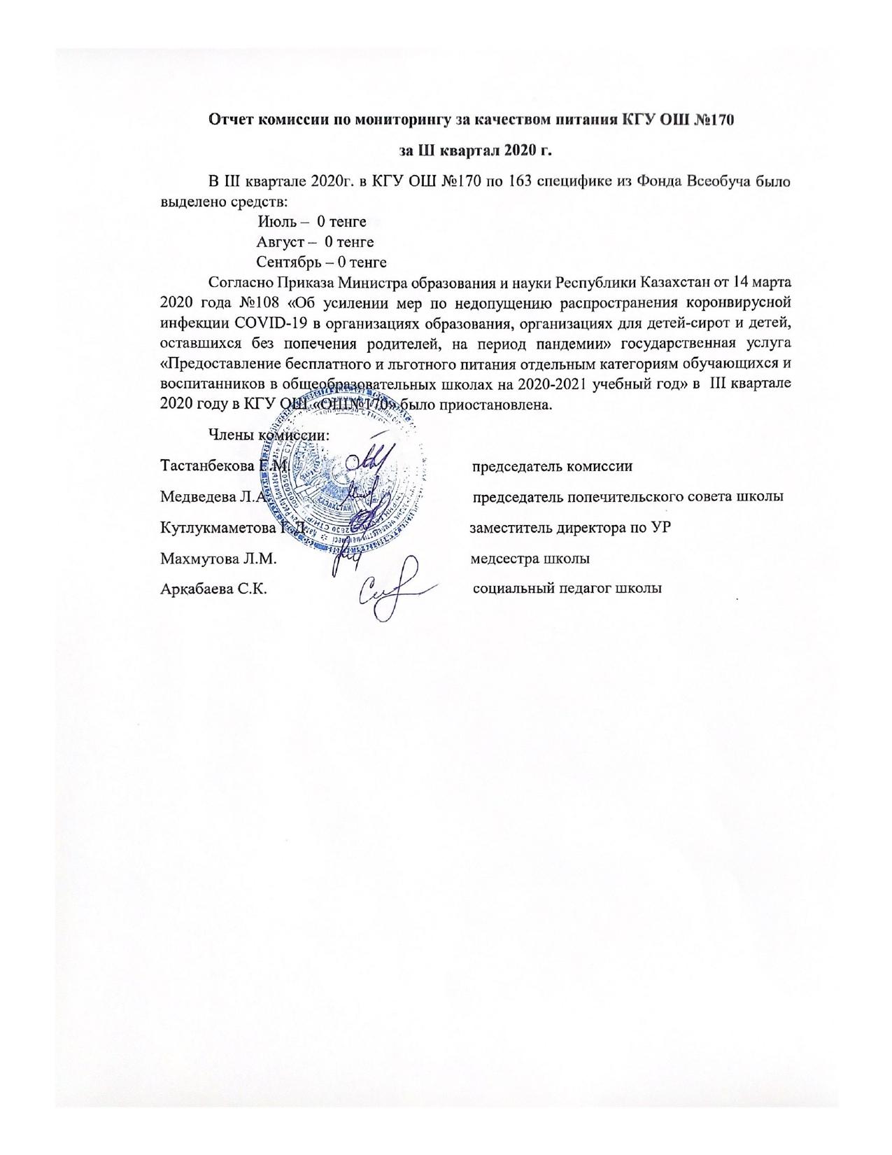 30 қыркүйек 2022 0 1 2 3 4 5 Тамақтану сапасының мониторингі жөніндегі комиссияның есебі/Отчет комиссии по мониторингу за качеством питания 3 квартал 2020 г. Осы беттің QR-коды:QR-код этой страницы:
