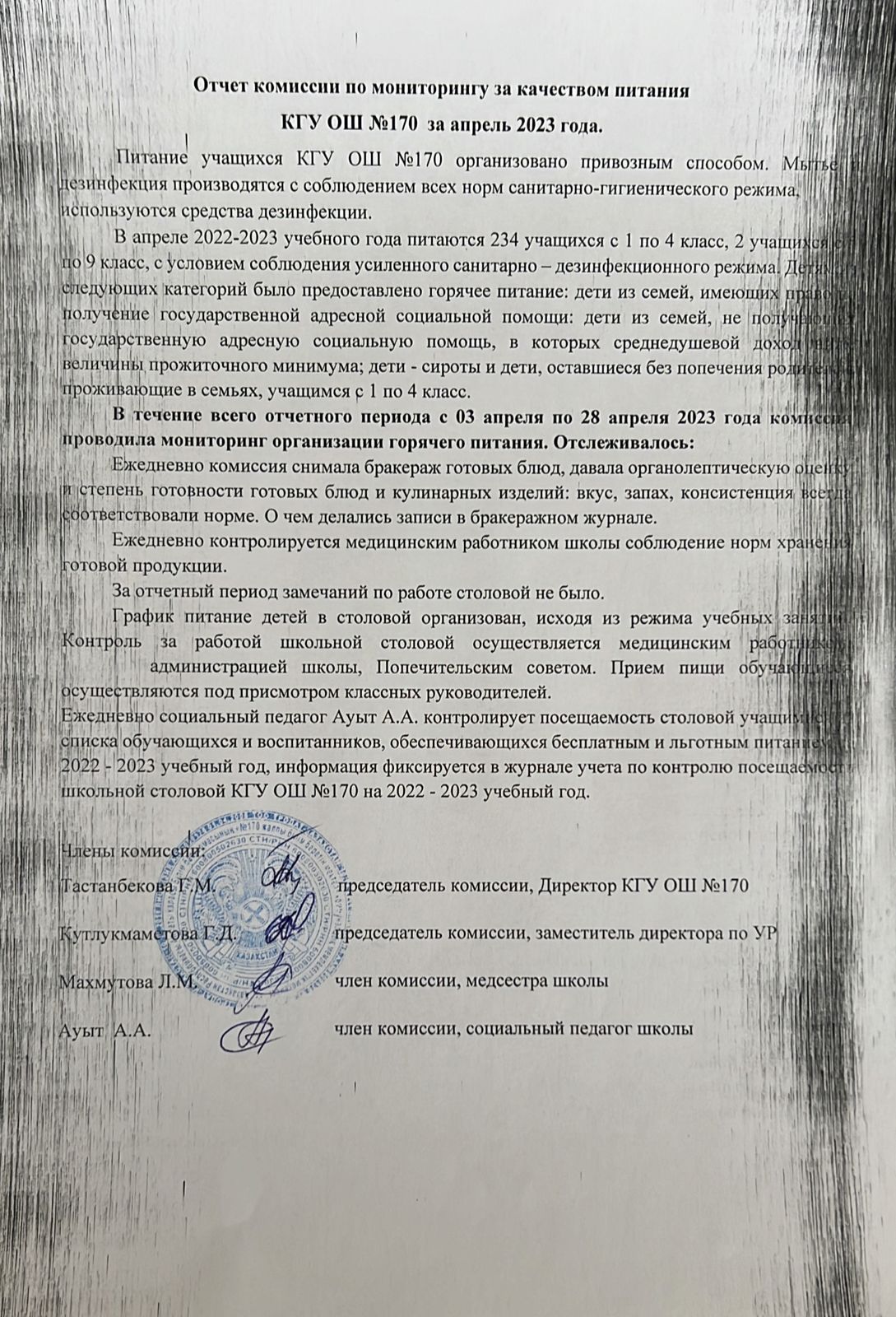 28 сәуір 2023 0 1 2 3 4 5 Тамақтану мониторингі жөніндегі комиссияның 2023 жылғы сәуірдегі есебі/Отчет комисии по мониторингу за качеством питания за апрель 2023г Осы беттің QR-коды:QR-код этой страницы: