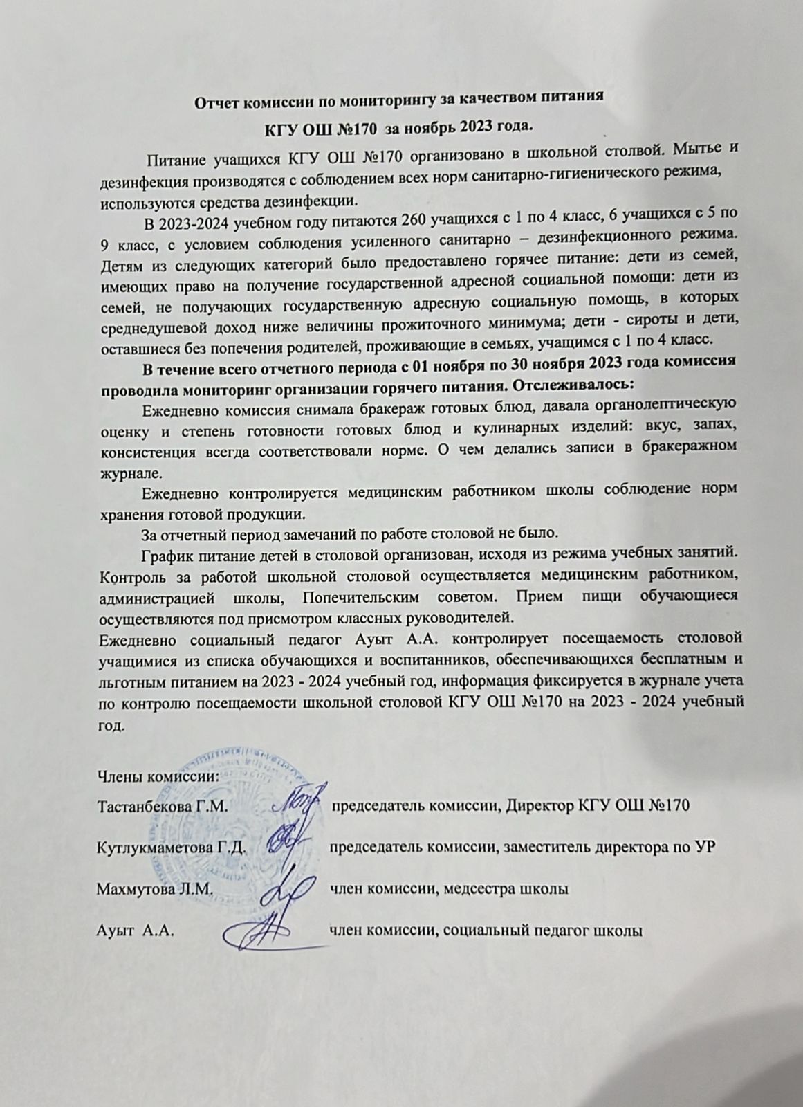 30 қараша 2023 0 1 2 3 4 5 Тамақтану мониторингі жөніндегі комиссияның 2023 жылғы қарашадағы есебі/Отчет комисии по мониторингу за качеством питания за ноябрь 2023г Осы беттің QR-коды:QR-код этой страницы: