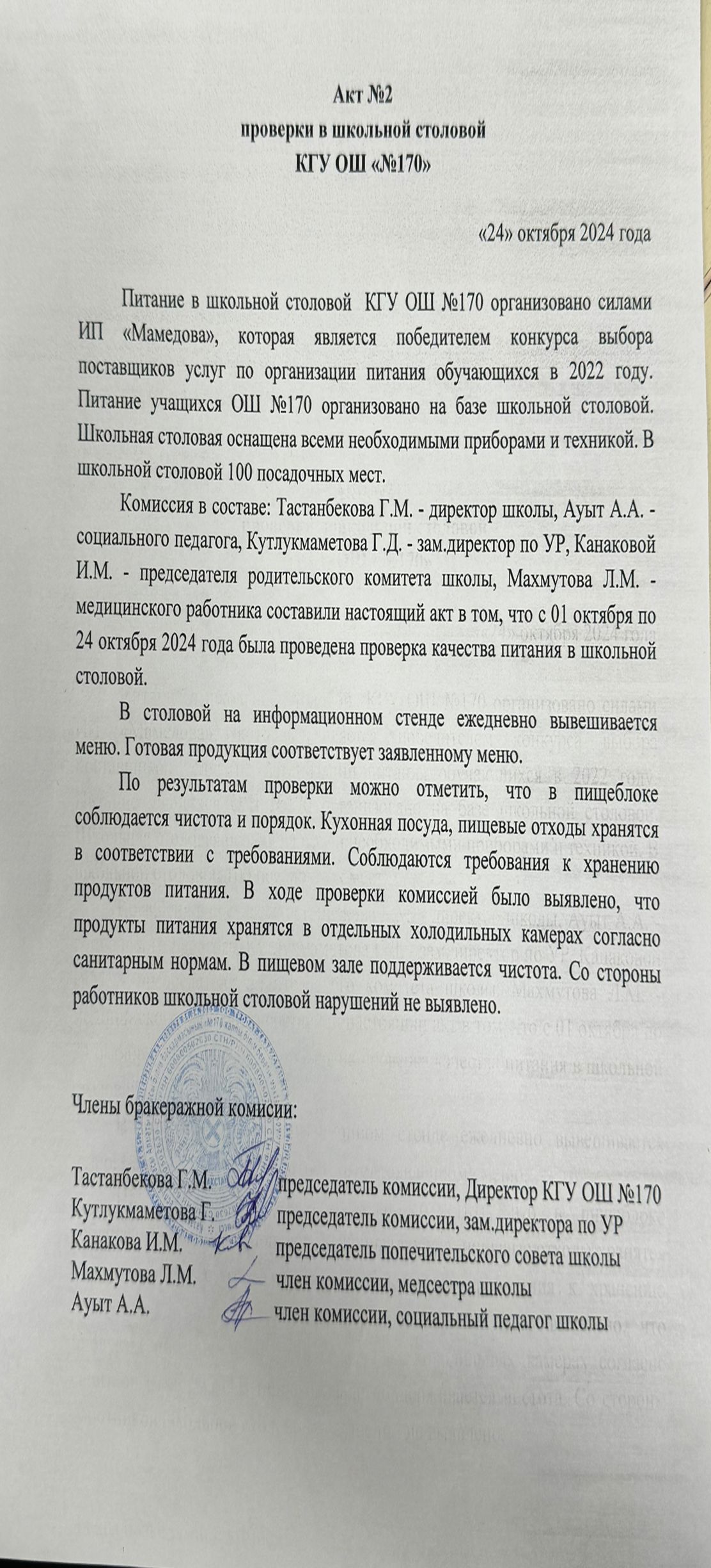 24 қазан 2024 0 1 2 3 4 5 Мектеп асханасын тексеру нәтижесінің №2 АКТі / АКТ №2 проверки в школьной столовой Осы беттің QR-коды:QR-код этой страницы: