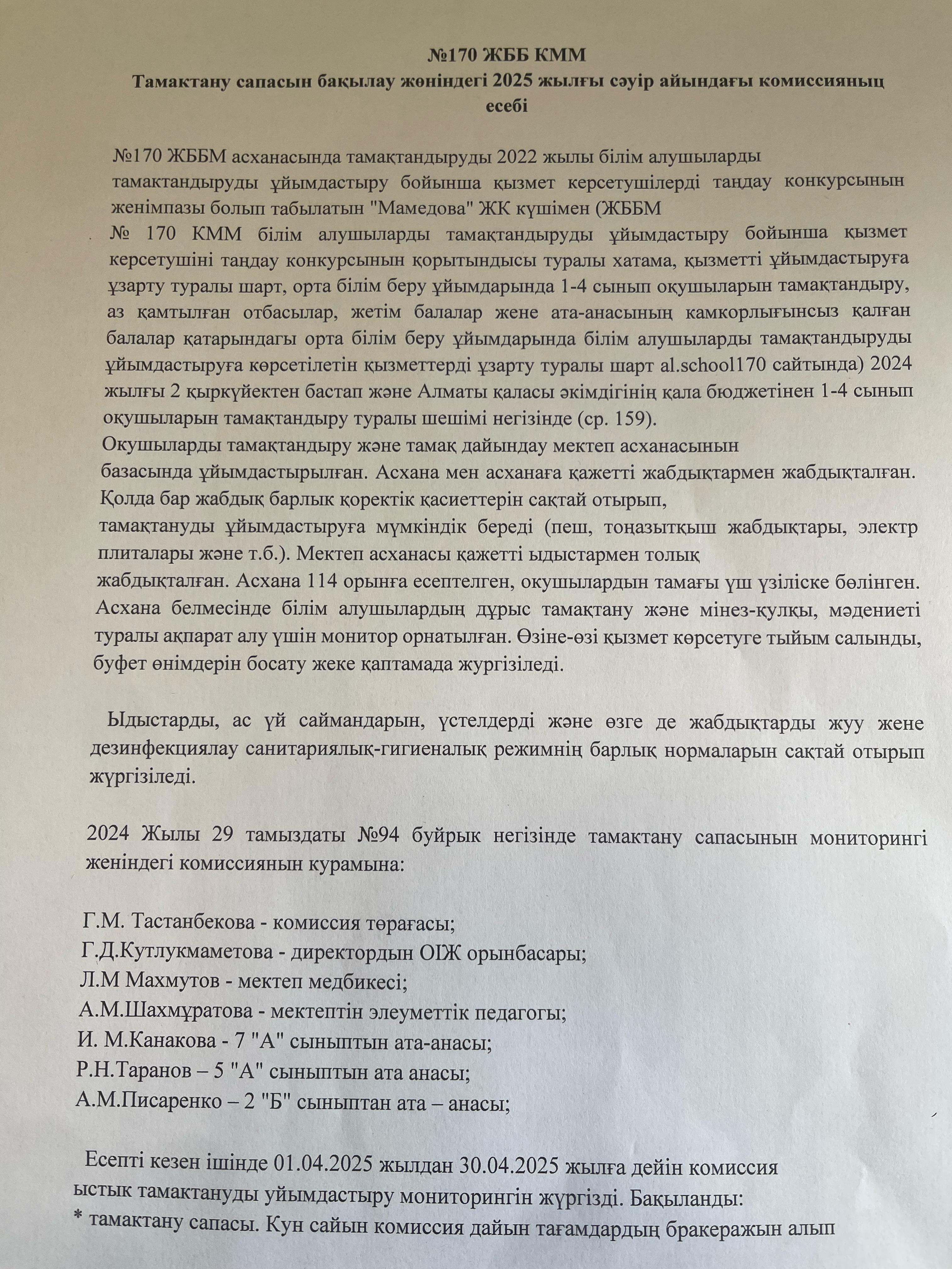 30 сәуір 2025 0 1 2 3 4 5 Тамақтану мониторингі жөніндегі комиссияның 2025 жылғы сәуір айының есебі/Отчет комисии по мониторингу за качеством питания за апрель 2025 Осы беттің QR-коды:QR-код этой страницы: