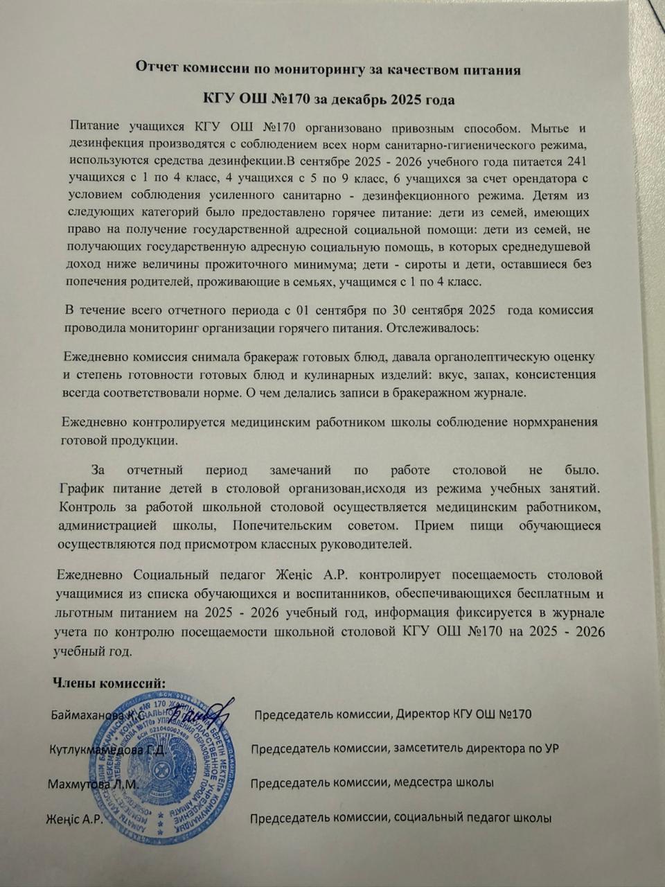 Тамақтану бойынша конкурс ХАТТАМАСЫ - 2025ж/ Протокола конкурса по питанию