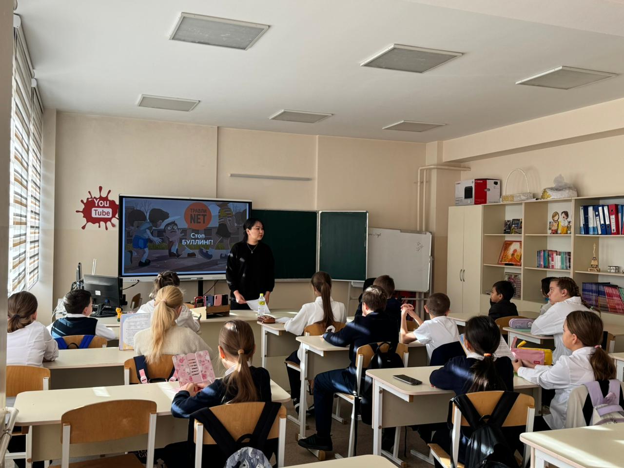 5 «А» сыныбының оқушыларымен «Буллинг және кибербуллинг» тақырыбында тренинг өткізілді. Тренингтің мақсаты – оқушылардың буллинг пен кибербуллинг мәселелері туралы хабардарлығын арттыру және олардың алдын алу дағдыларын қалыптастыру.